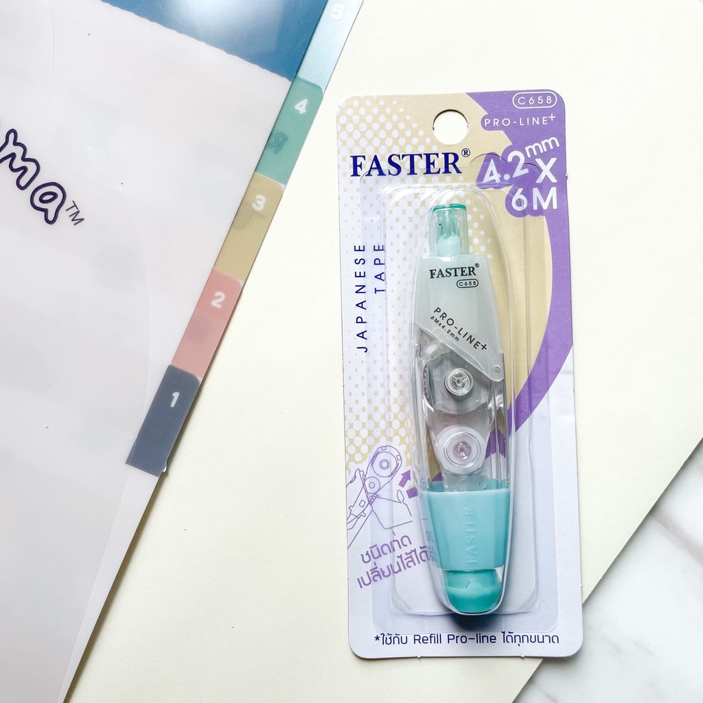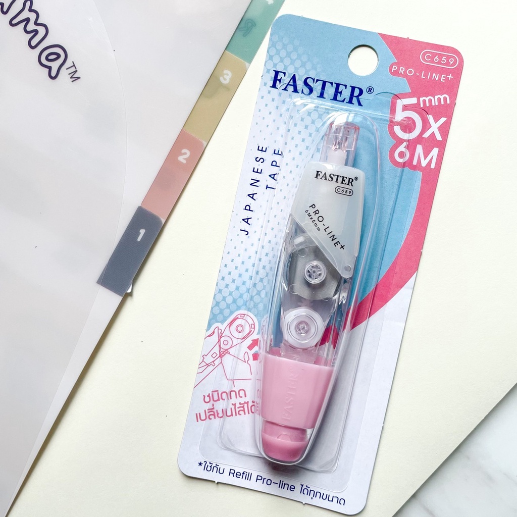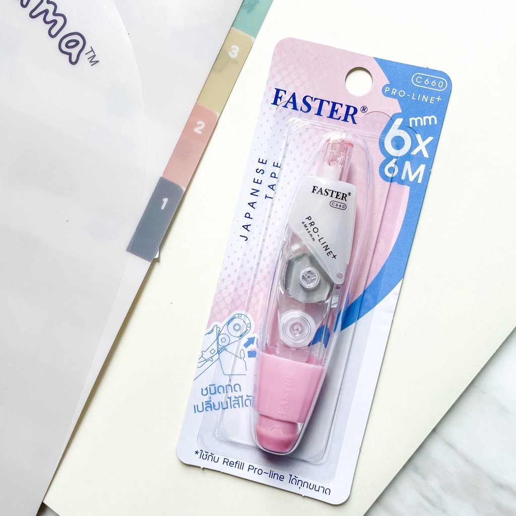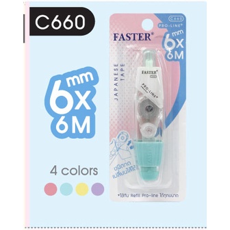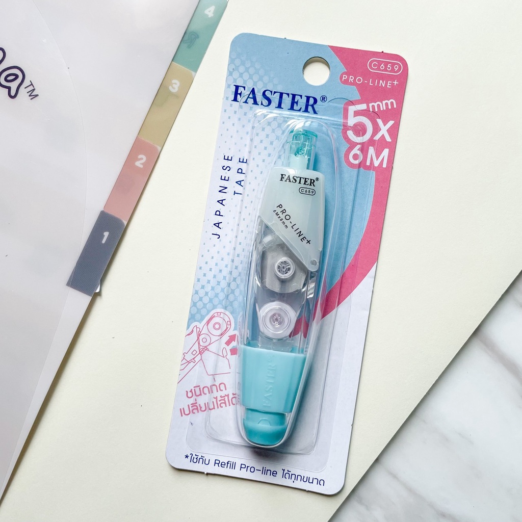 (เลือกสีได้) เทปลบคำผิด FASTER รุ่น Pro Line Plus ฟาสเตอร์ เปลี่ยนไส้เทปได้ กว้าง 4.2 /5/ 6 มม. ยาว 6 ม. [Pro Line Plus]