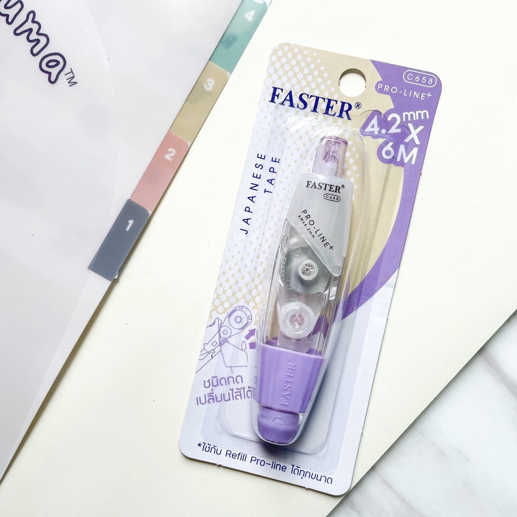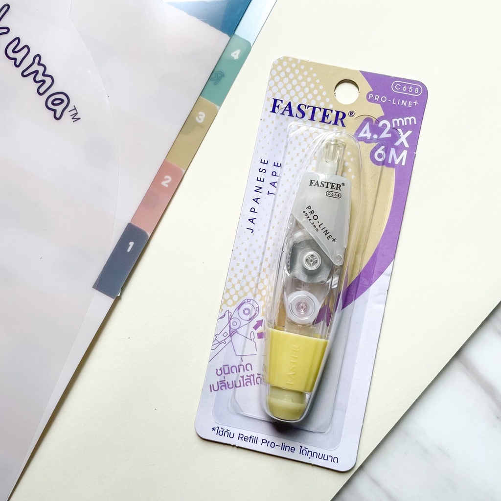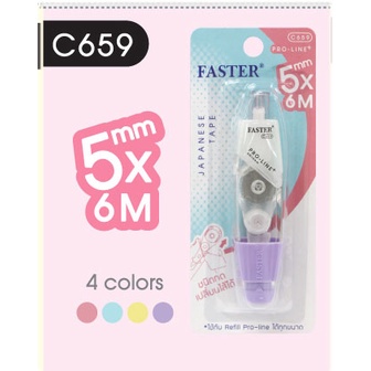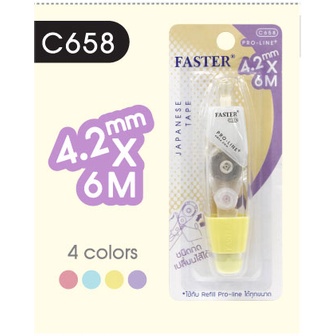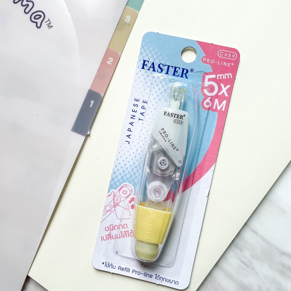 (เลือกสีได้) เทปลบคำผิด FASTER รุ่น Pro Line Plus ฟาสเตอร์ เปลี่ยนไส้เทปได้ กว้าง 4.2 /5/ 6 มม. ยาว 6 ม. [Pro Line Plus]