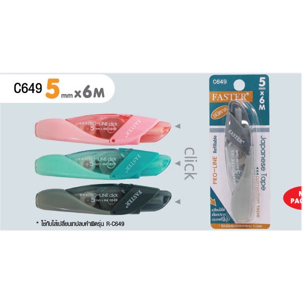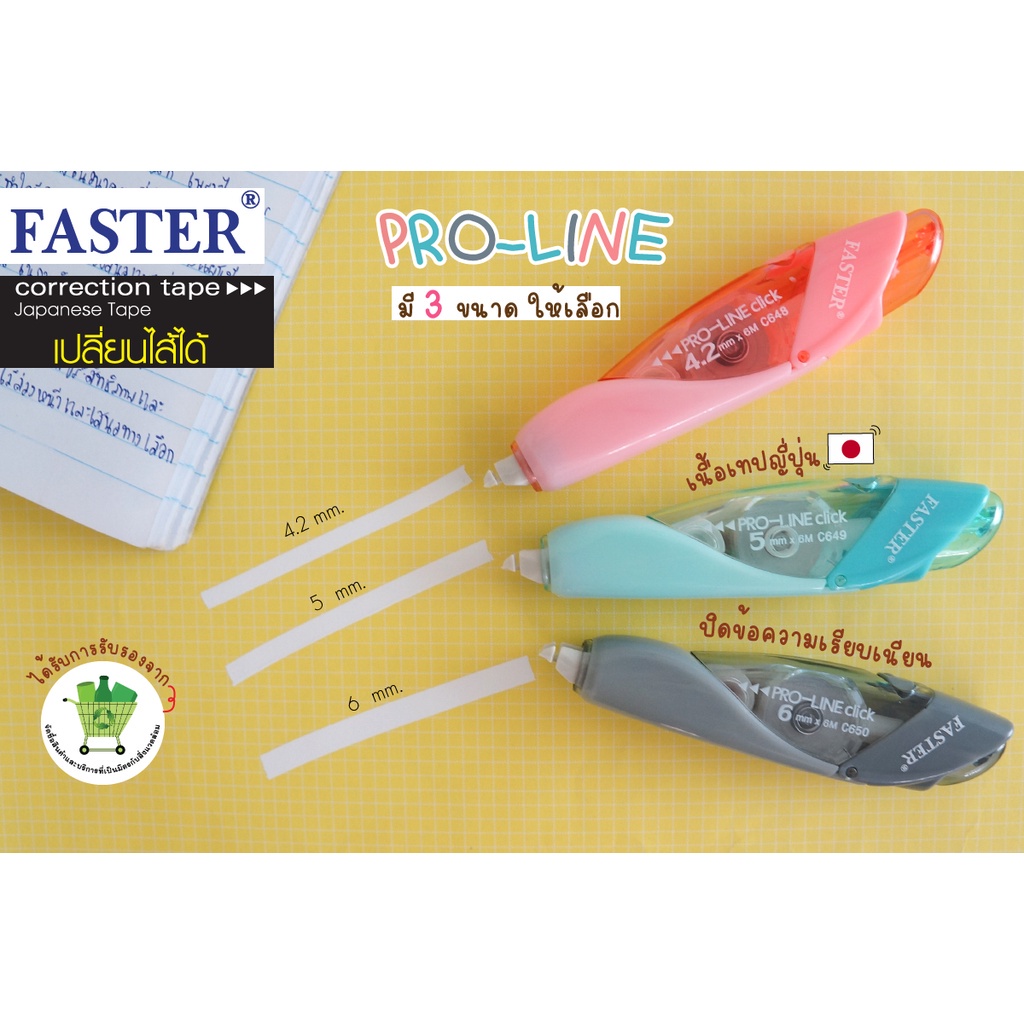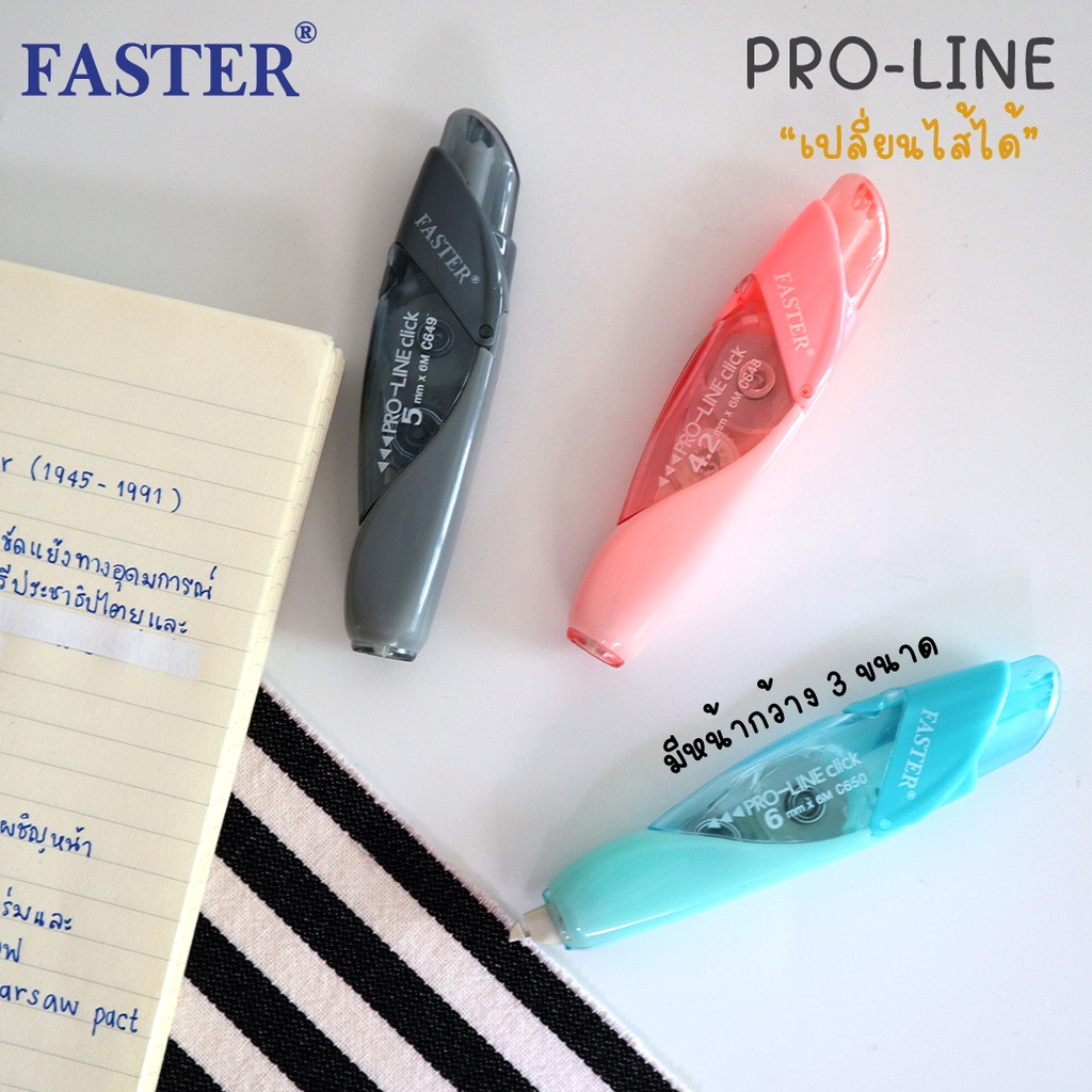 ll สั่งร้ านนี้ ส่งไวกว่า ll เทปลบคำผิด ฟาสเตอร์ FASTER Pro Line เปลี่ยนไส้เทปได้ เทปกว้าง 4.2/5/6 มม. ยาว 6 ม.