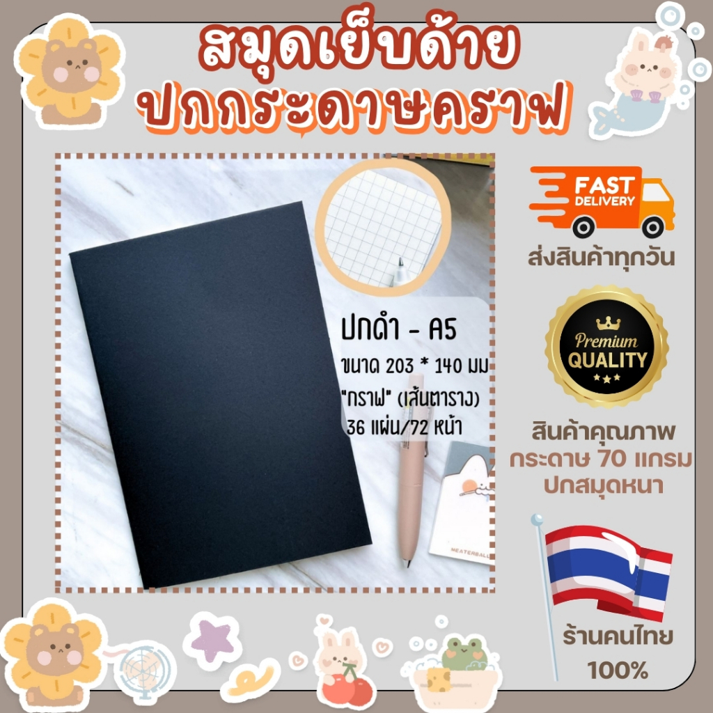 สมุด สมุดโน๊ต สมุดเย็บด้าย ปกดำ ปกน้ำตาล กระดาษมีเส้น กระดาษเส้นกราฟ ขนาด A5 B5 สมุดปกคราฟ