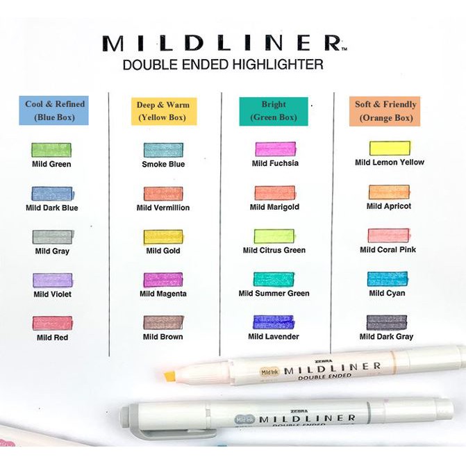 (มีสีใหม่ 5 สี) ZEBRA Mildliner ปากกาเน้นข้อความ แบบแยกแท่ง 2 หัว - 40 สี Mild Liner แบบแยกแท่ง และ Set มีครบทุกสี