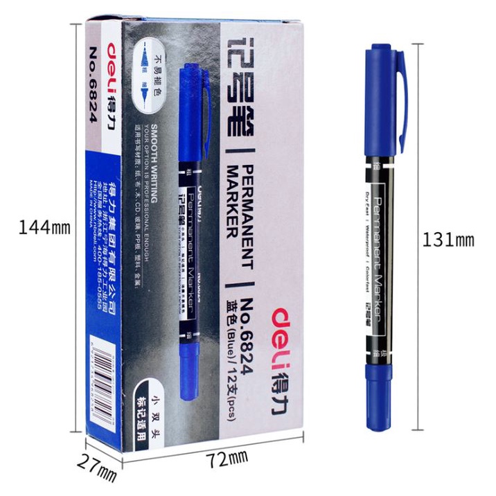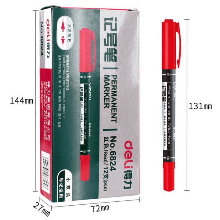 Deli Marker Pen 6824 ปากกาเขียนถุง ปากกากันน้ำ มาร์คเกอร์ ปากกาเคมี เขียนซองพลาสติก 2 หัว
