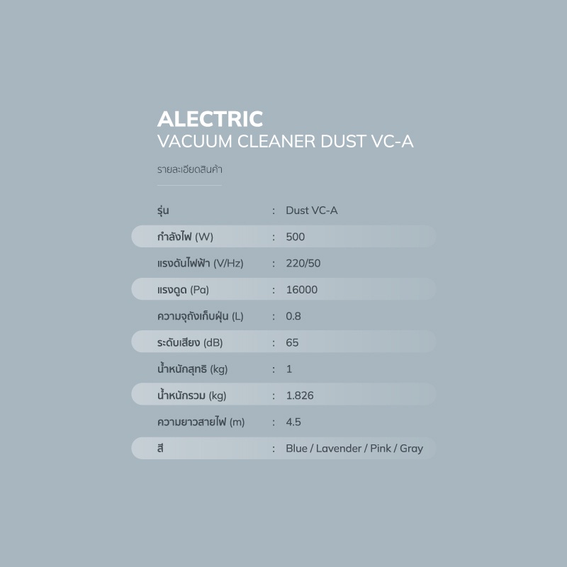 Alectric x SCE Plus Vacuum Cleaner รุ่น Dust VC-A – เครื่องดูดฝุ่นแรงดูดสูง 16000Pa ฟรีหัวดูด 11 หัว