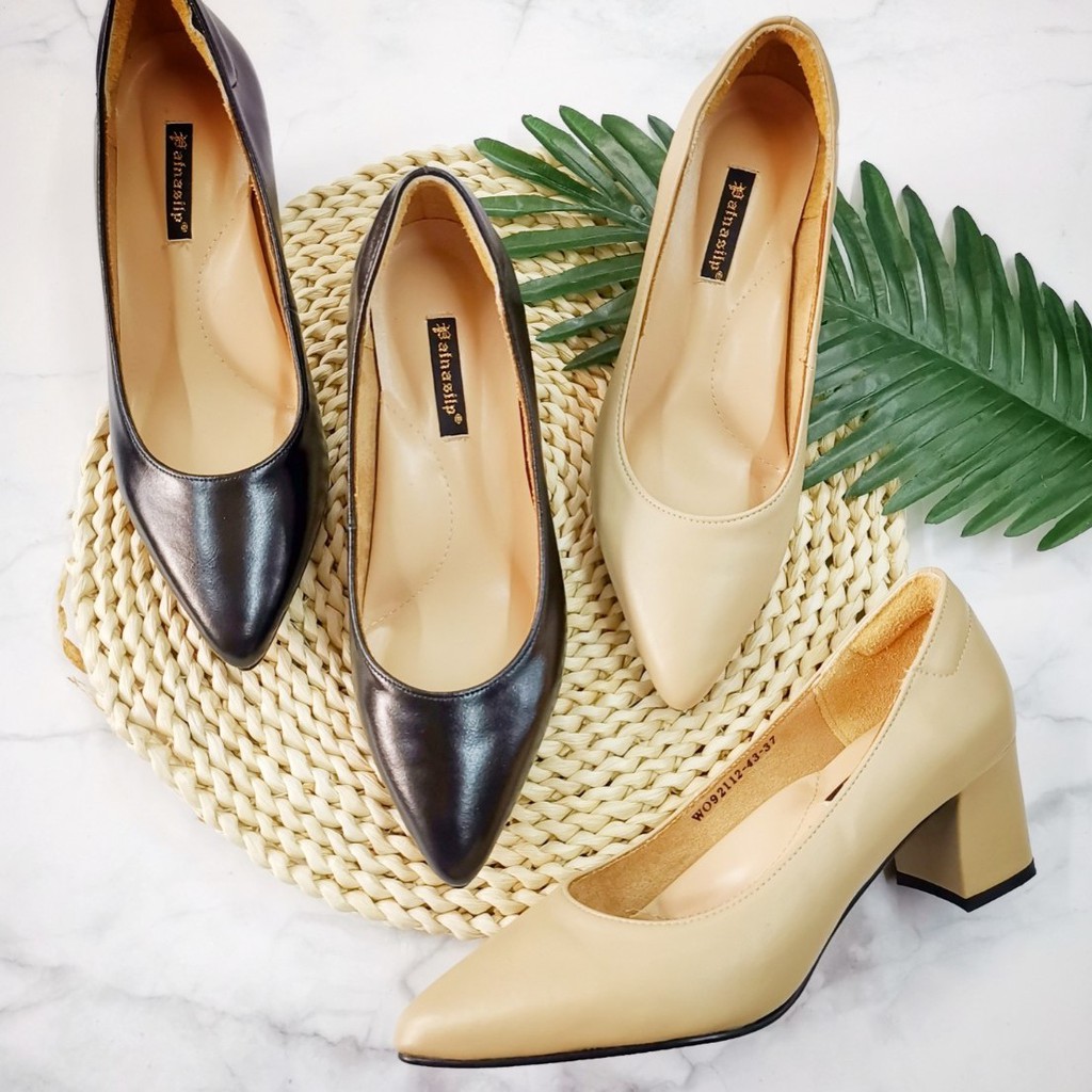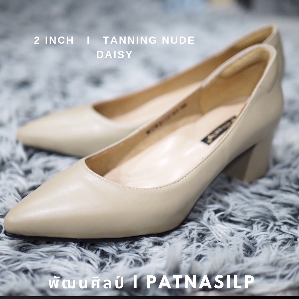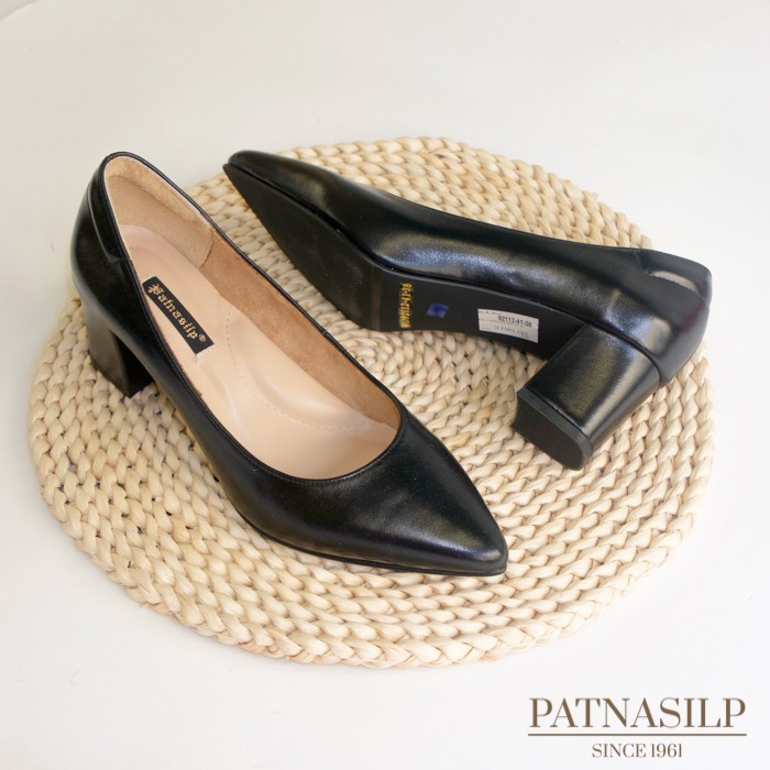 𝐏𝐀𝐓𝐍𝐀𝐒𝐈𝐋𝐏 รองเท้าส้นสูง สีดำ / นู๊ด หัวแหลม ส้นหนา ใส่แล้วเท้าขาว l 92112