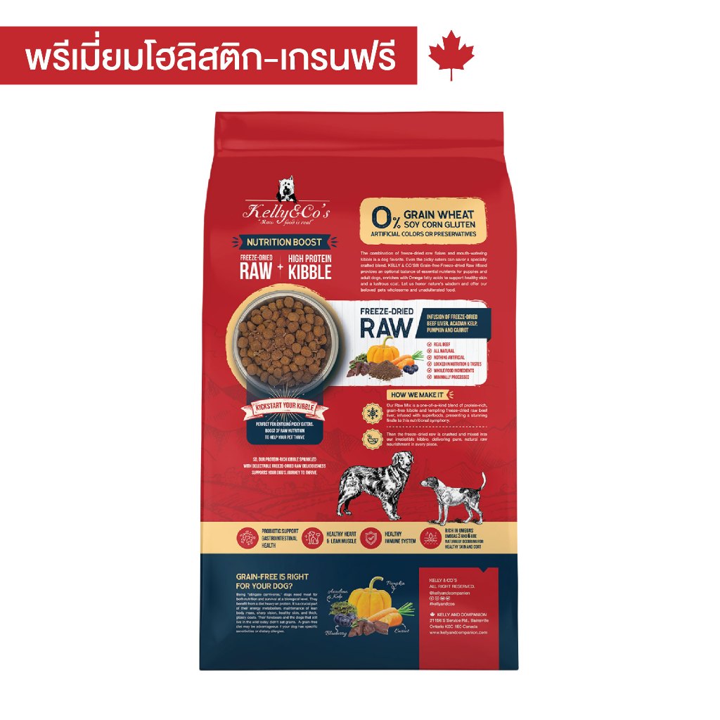 เคลลี่แอนด์โค อาหารสุนัขเกรนฟรีเคลือบฟรีซดราย รอว์มิกซ์ 2.72 กก ไม่มีธัญพืชและสัตว์ปีก ลดอาการแพ้