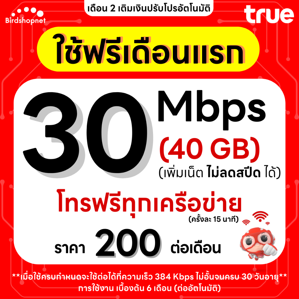(ใช้ฟรีเดือนแรก) ซิมเทพทรู True เน็ต 15 Mbps (65GB) + ฟรีทุกเครือข่ายได้ นาน 12 เดือน