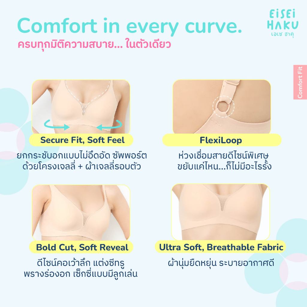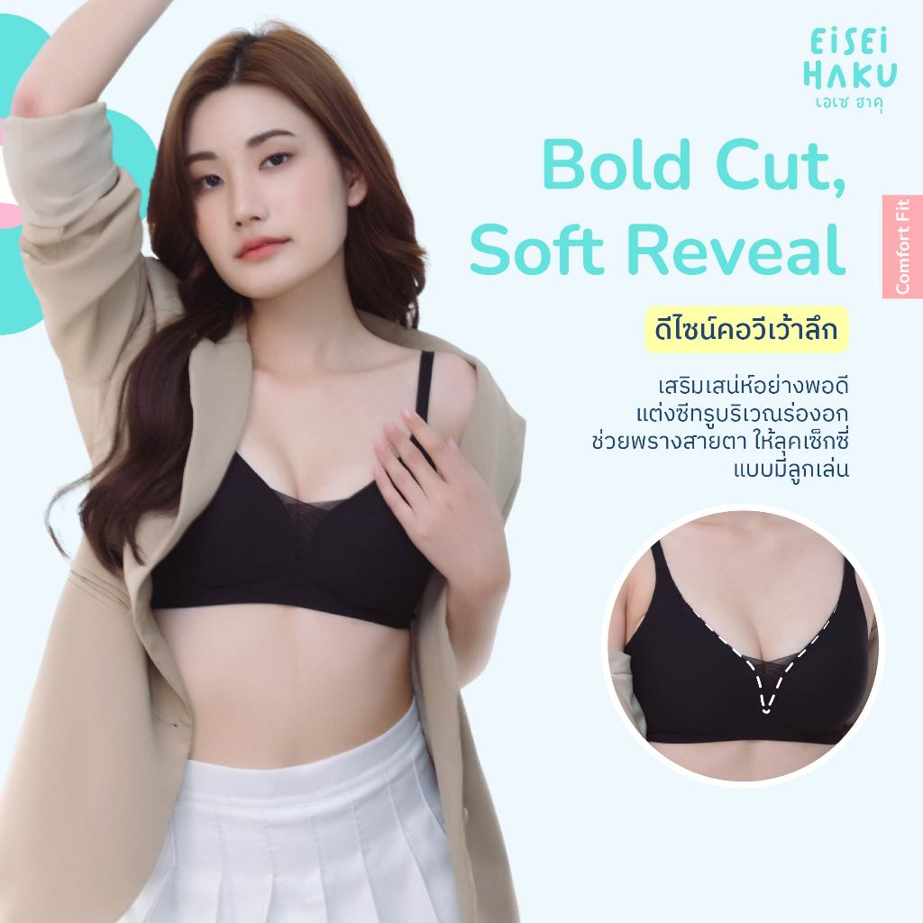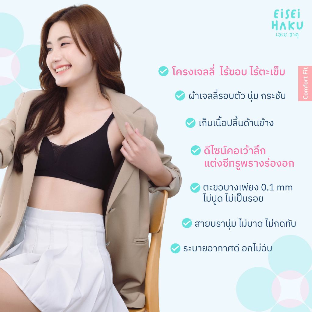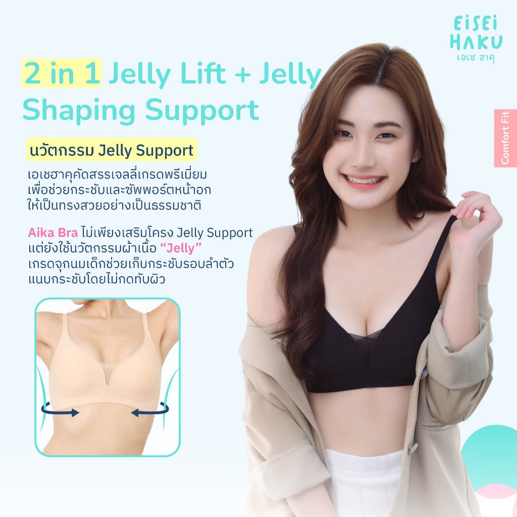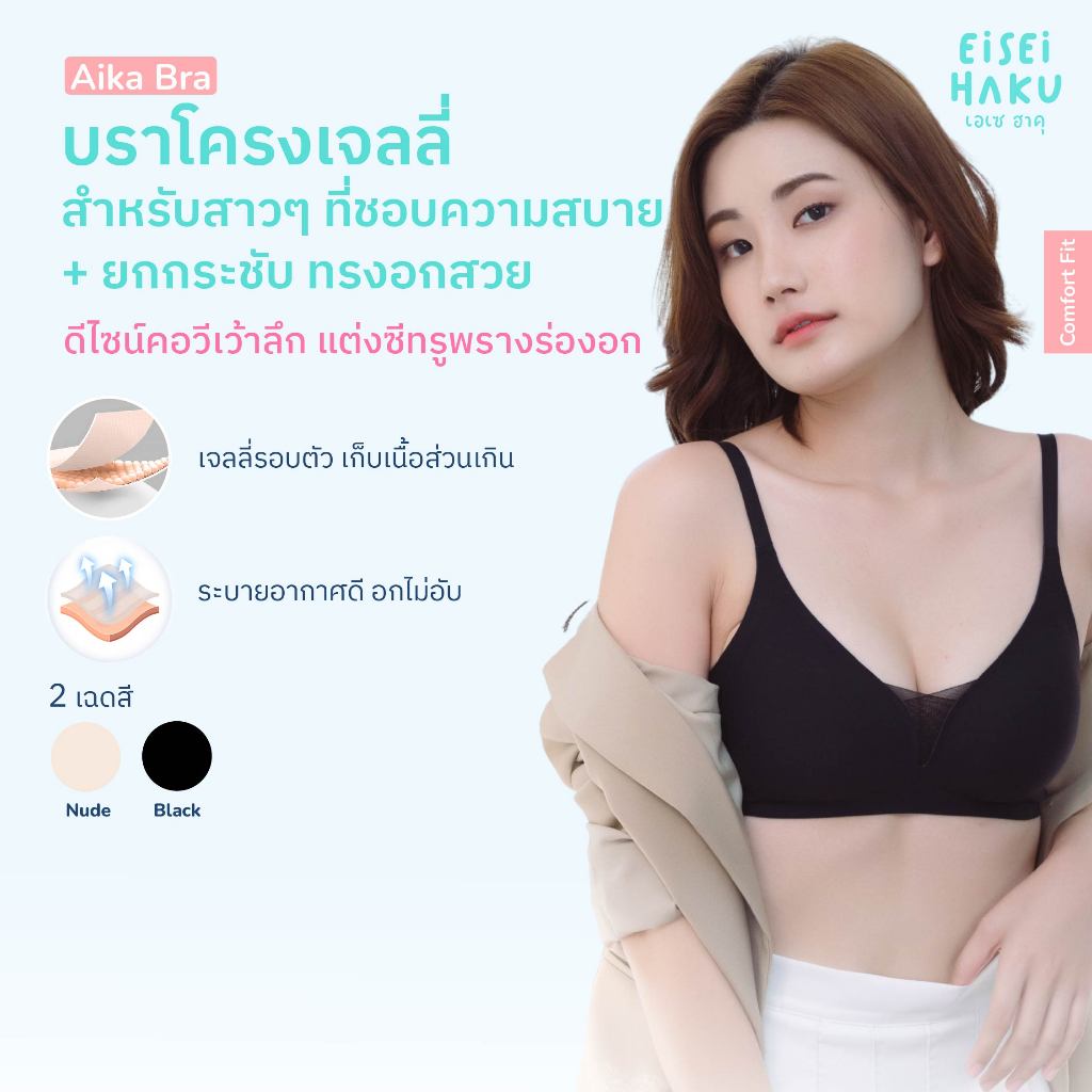 Eisei Haku Aika Bra บราโครง Jelly นุ่ม กระชับ โกยอกเก็บเนื้อสร้างทรงสวย ซีทรูโชว์ร่องอก ใส่สบายไม่กดทับ
