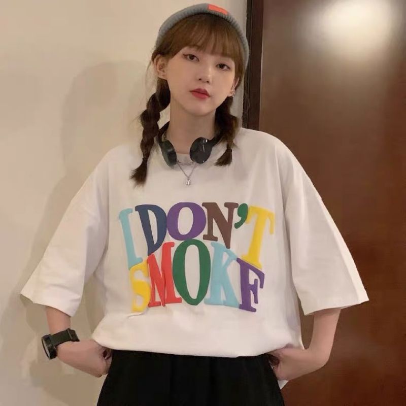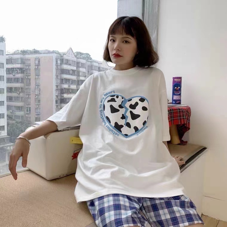Mini shop🌺พร้อมส่ง🌺 เสื้อยืดแขนสั้นคอกลมสีขาว ลายน่ารักๆเท่ๆ ผ้านิ่มใส่สบาย (DX-29)