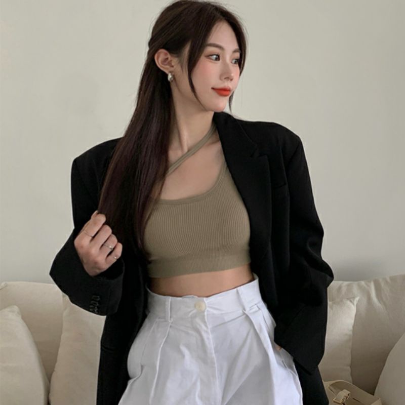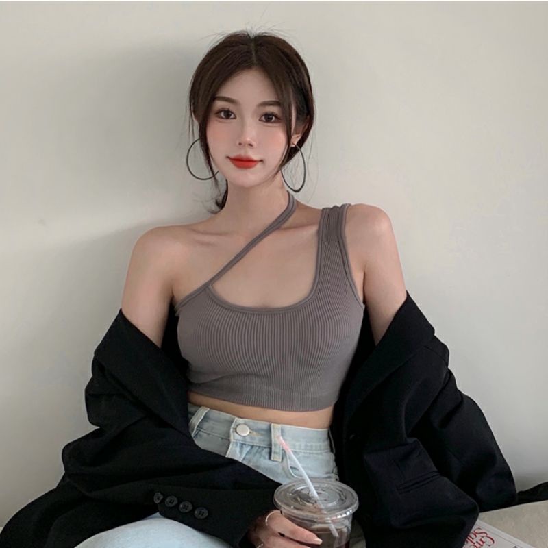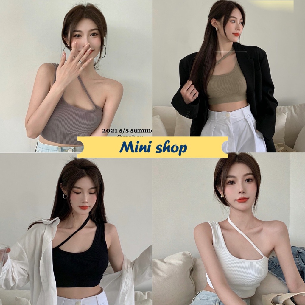 Mini shop🌸พร้อมส่ง🌸 (FY402) สื้อสายกล้ามไหมพรม มีฟองน้ำ ดีเทลผ้าร่องใส่สบายน่ารัก