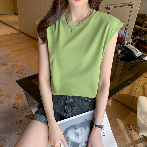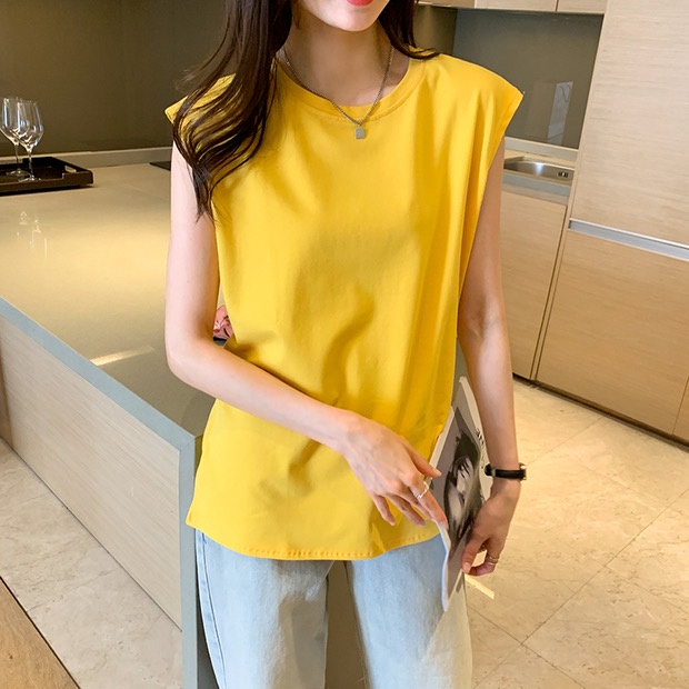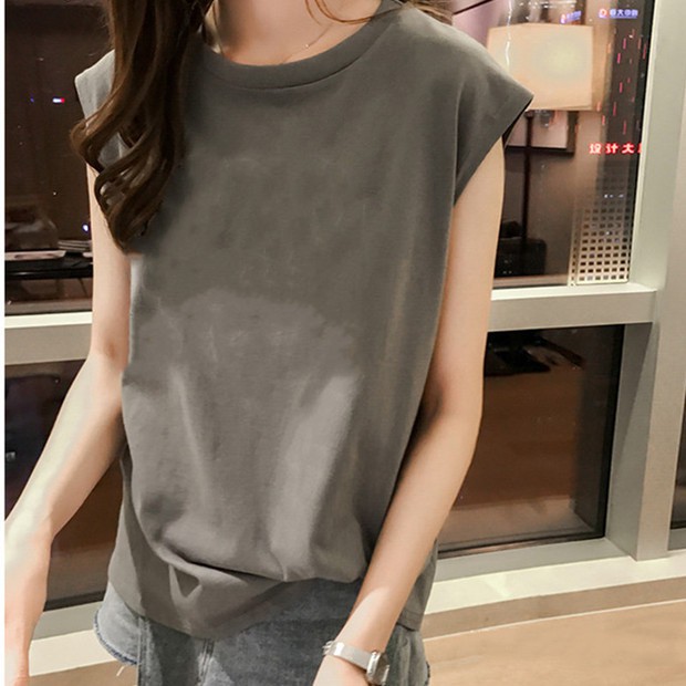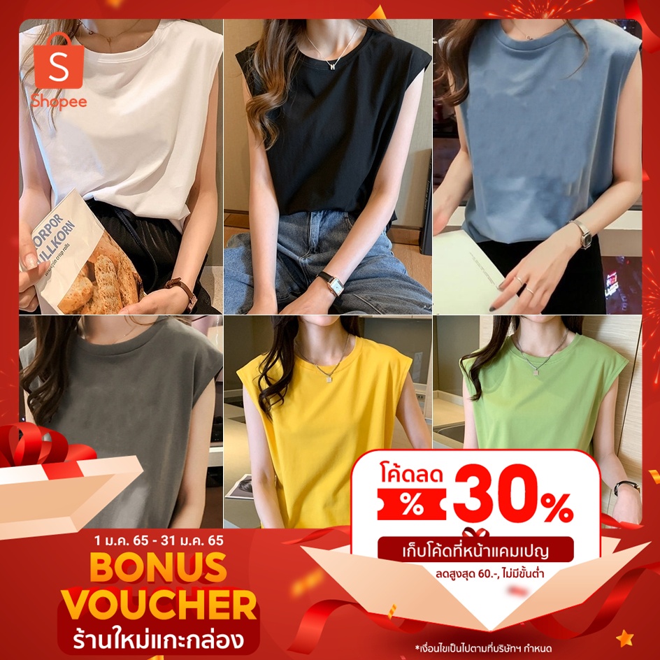 GC เสื้อยืดแขนกุด สีพื้น แฟชั่นสไตล์เกาหลี เสื้อผู้หญิง เสื้อกล้ามแนวเกาหลี สตรีท เนื้อผ้าดี สวมใส่สบาย