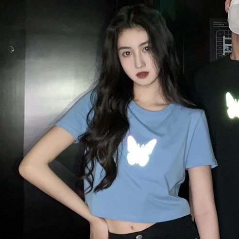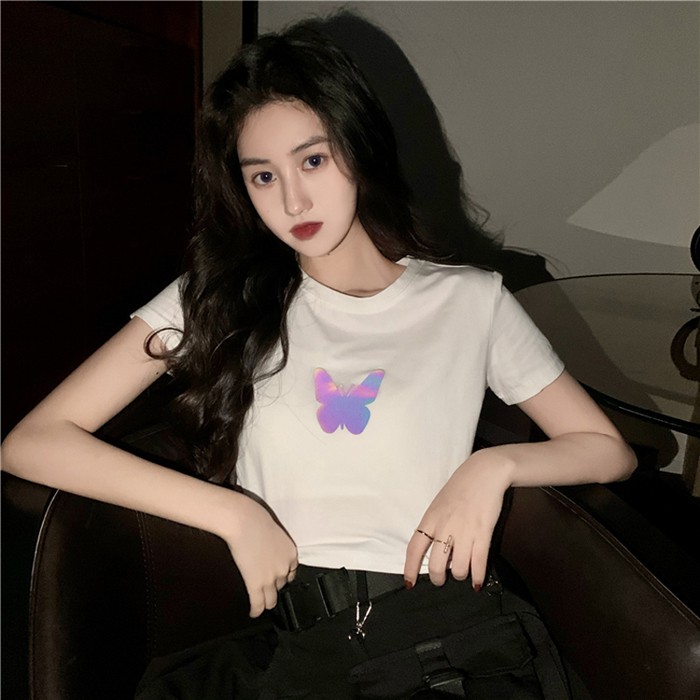 GC เสื้อยืดสะท้อนแสง ทรงOversize แฟชั่น สไตล์เกาหลี ลายผีเสื้อ