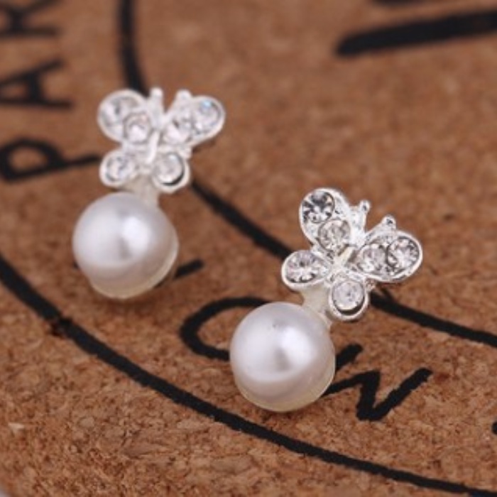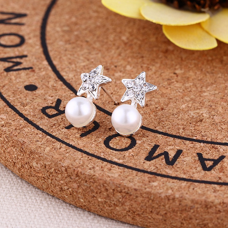 ต่างหูสตั๊ด ประดับเพทาย ไข่มุก สไตล์เกาหลี สำหรับผู้หญิง