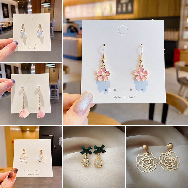 ต่างหูน่ารัก ห้อย ตุ้มหู ราคาส่ง พู่ แฟชั่น เกาหลี มินิมอล ผู้หญิง มุก ยาว ย้อนยุคต่างหู