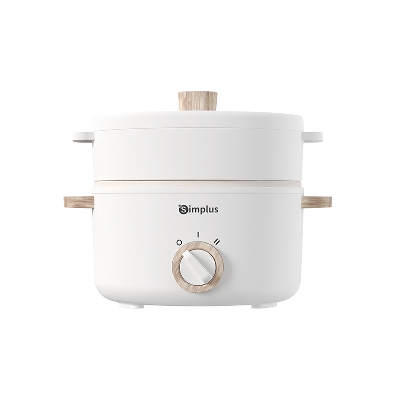 Simplus ชั้นนึ่ง หม้อไฟฟ้าอเนกประสงค์ 600W ไม่ติดหม้อ ควบคุมอุณหภูมิสองระดับ ความจุสูง DZGH003