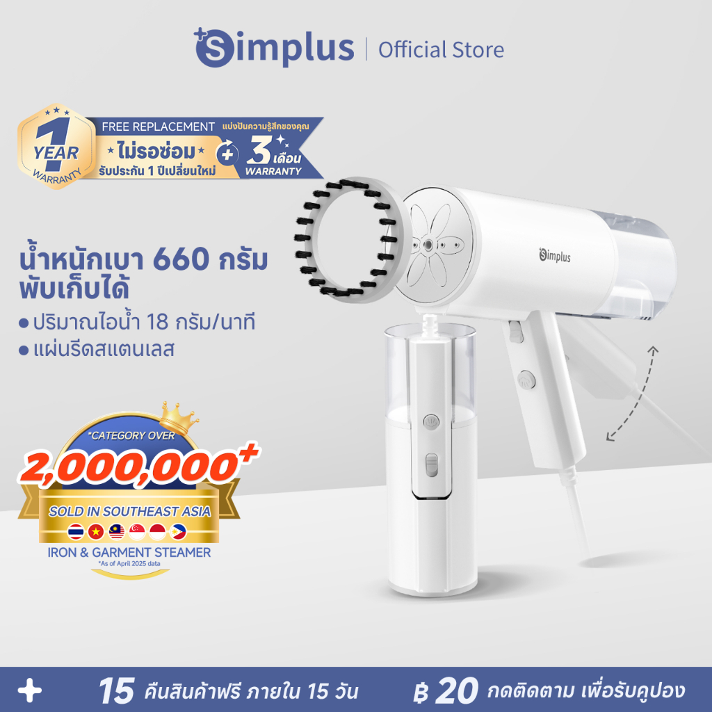 Simplus GTJH016 เตารีดไอน้ำแบบมือถือ พับเก็บได้ ใช้ได้สำหรับการเดินทางเพื่อธุรกิจ เตารีดผ้าไอน้ำพกพา Foldable Steam iron