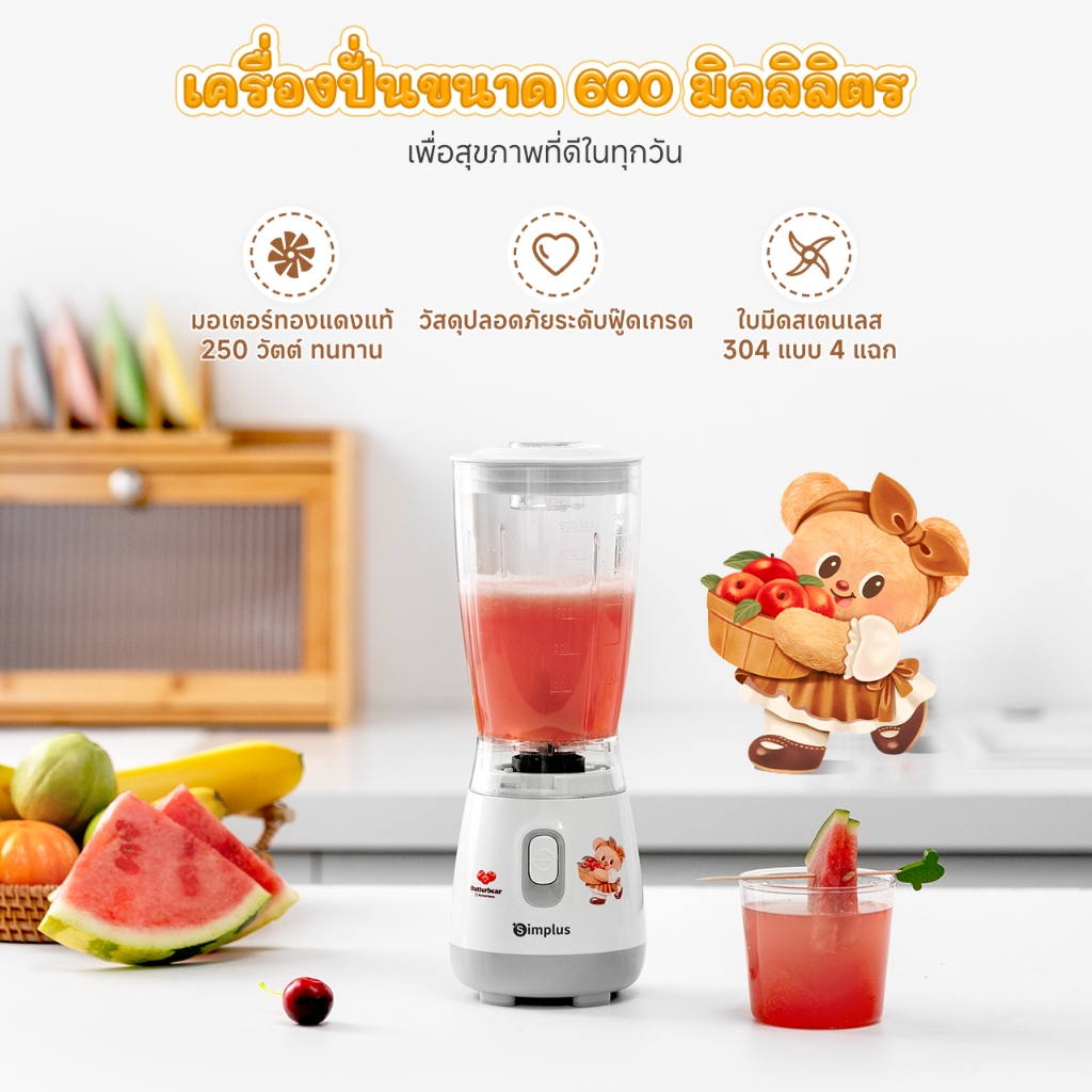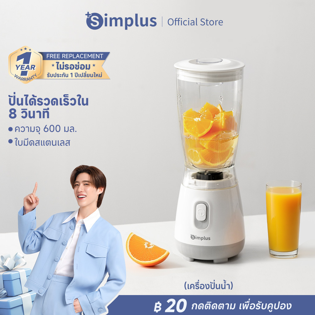 Simplus Blender เครื่องปั่นอเนกประสงค์ ใบมีดสแตนเลส ความจุใหญ่ 600ML LLJH004