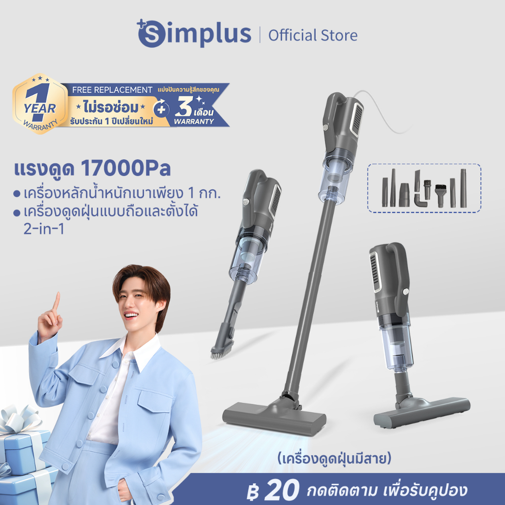 Simplus 16000PA ใช้ในครัวเรือน แรงดูดทรงพลัง Vacuum Cleaner เครื่องดูดฝุ่นแบบมีสาย บรรจุภัณฑ์ปกติ 3 ชิ XCQH008