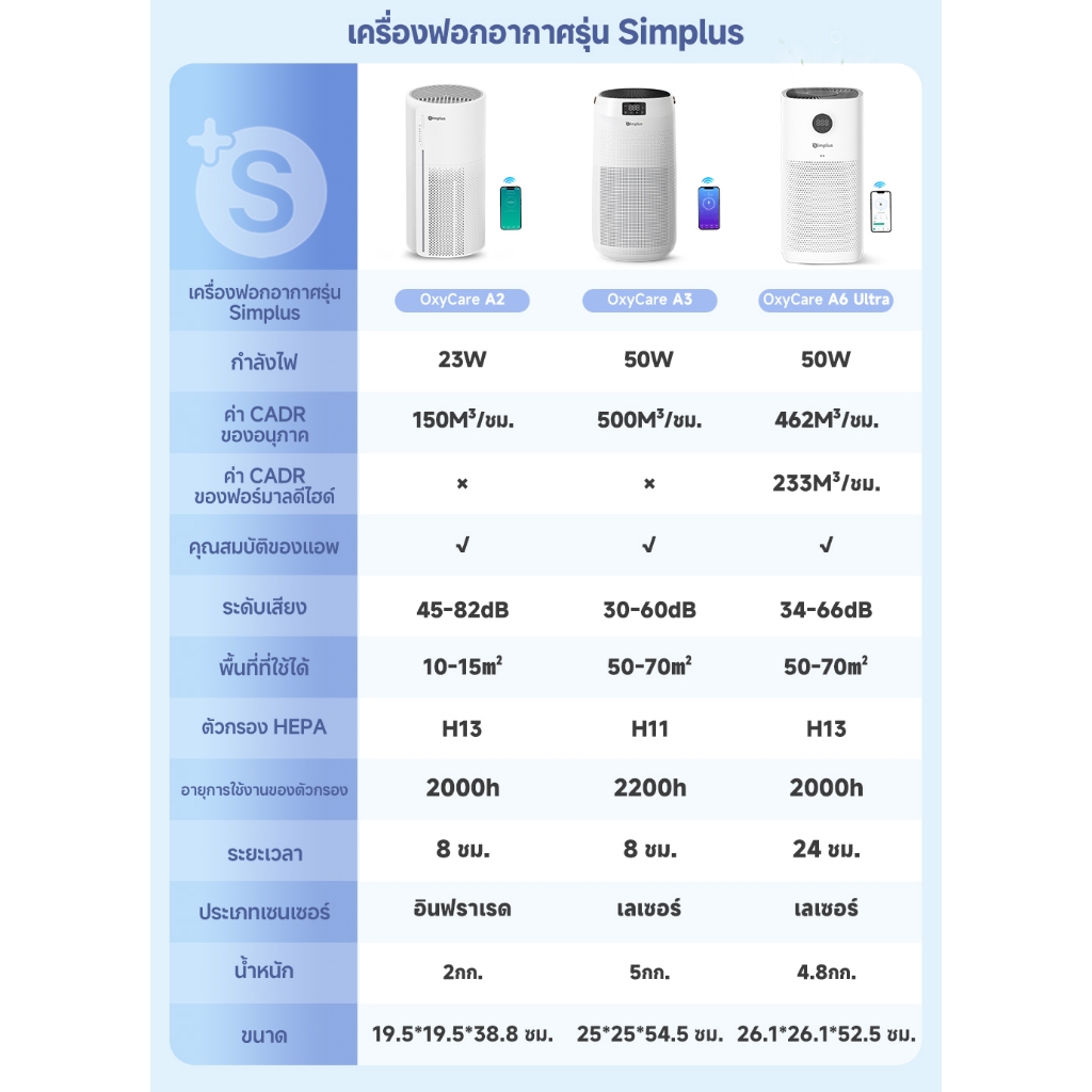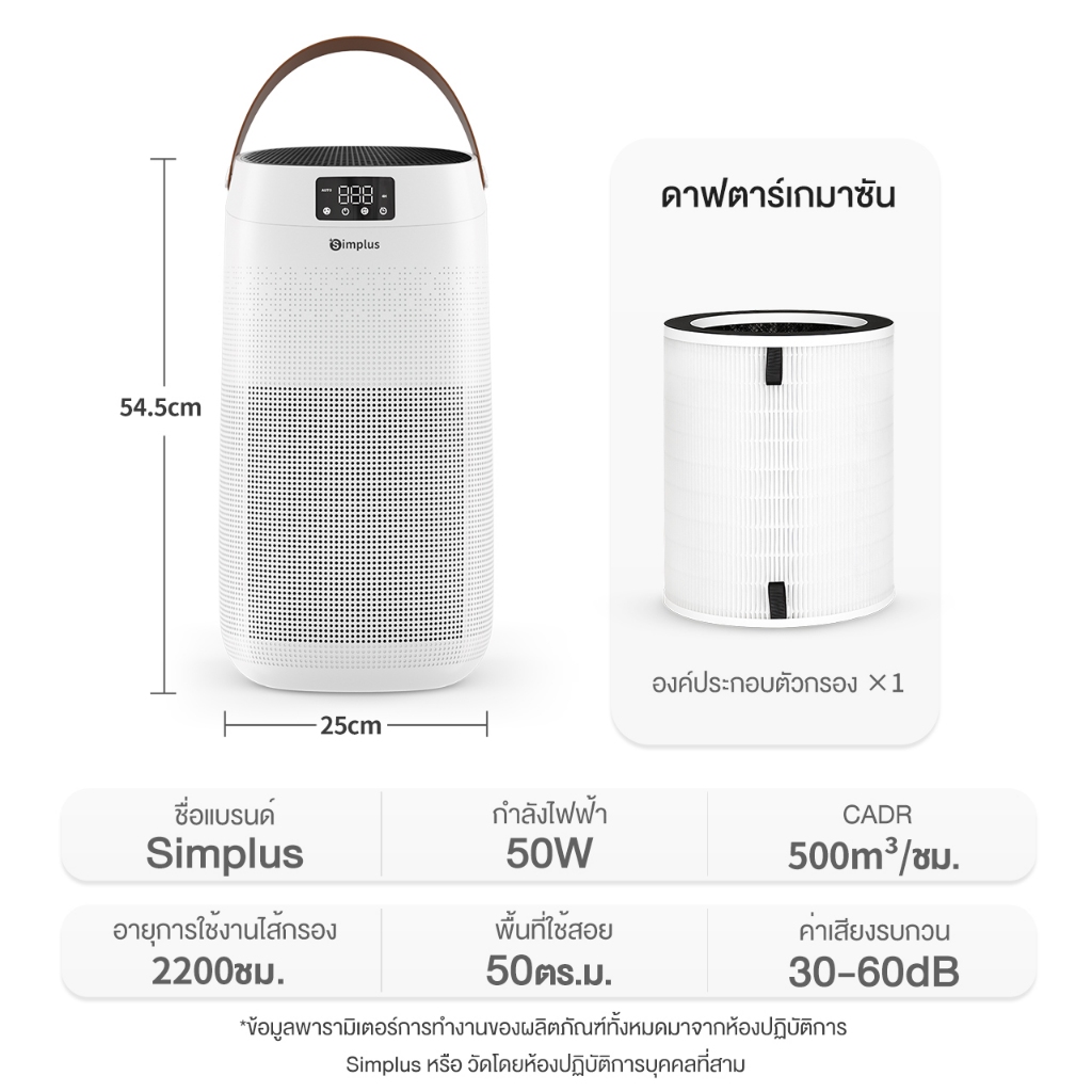 Simplus x PP Krit AirCareA3 เครื่องฟอกอากาศ 62 ตร.ม.ใช้ในครั วเรือน หน้าจอสัมผัส PM2.5กำจัดกลิ่นAPP KQJH006