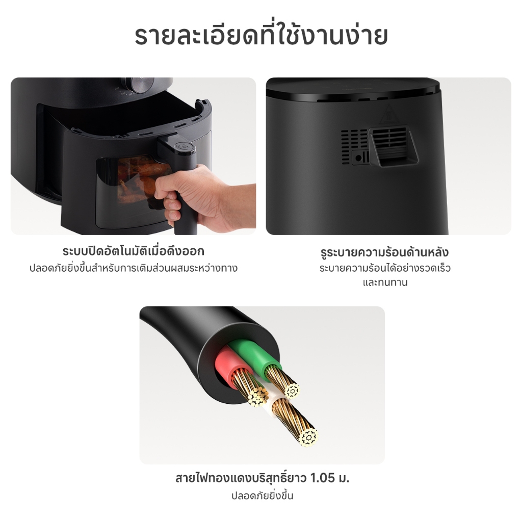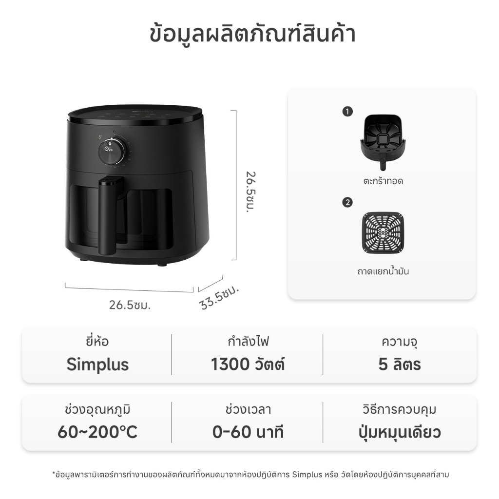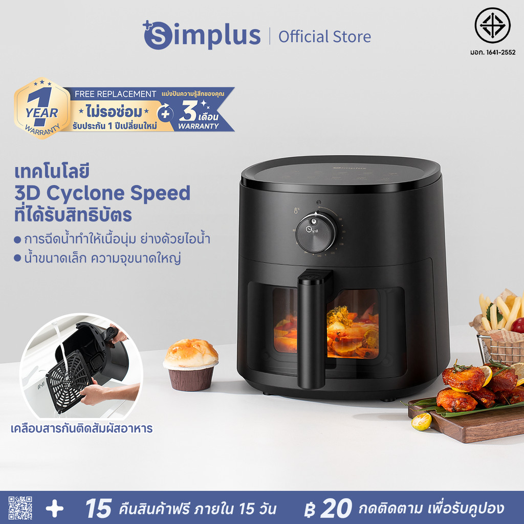 Simplus Air Fryer หม้อทอด ไร้น้ำมัน 5L เทคโนโลยี 3D Cyclone 10 ฟังก์ชั่นเมนู ทำความสะอาดง่าย KQZG022FZ