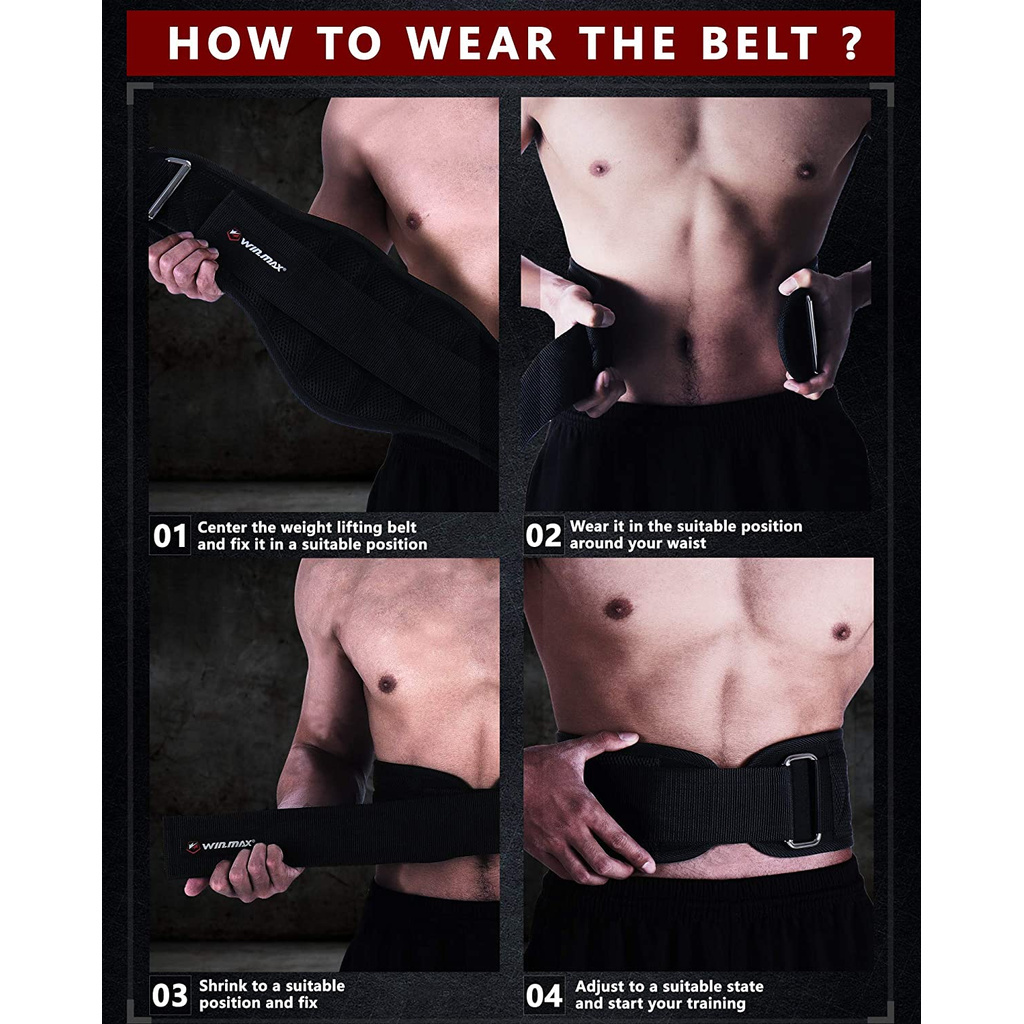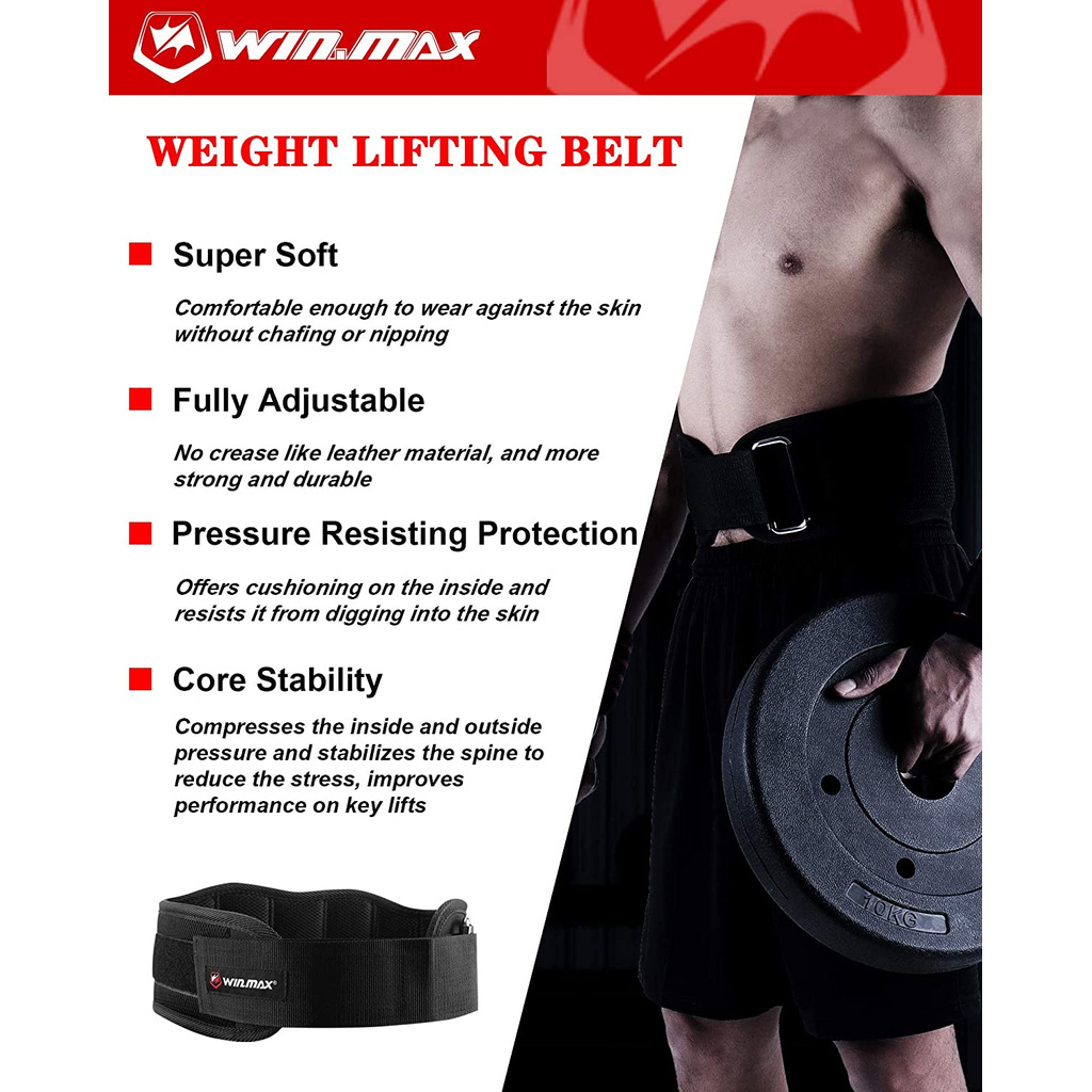 Winmax เข็มขัดยกน้ําหนัก พร้อมสายรัดข้อมือ เข็มขัดออกกําลังกาย สําหรับยกไนลอน ยกน้ําหนัก เข็มขัดหมอบ เข็มขัดพยุงหลัง เ ข็มขัดฝึกยก หลัง ฟิตเนส ครอสฟิต ผู้ชาย ผู้หญิง