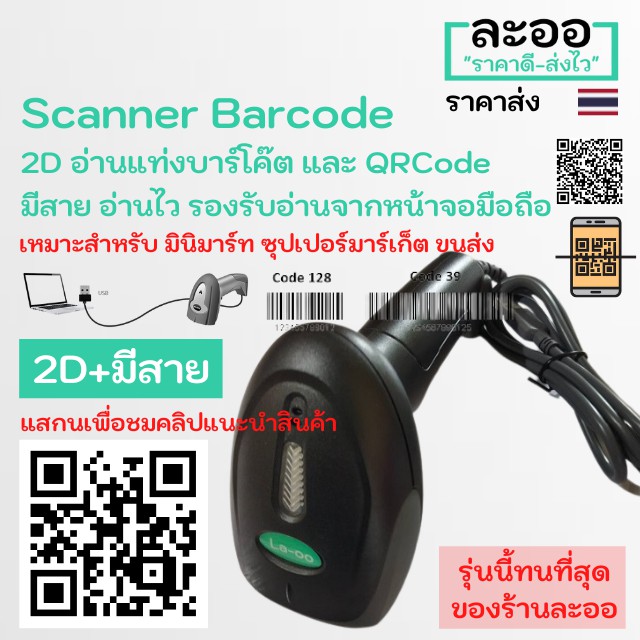 N2D-01 ถูกมาก ** สแกนเนอร์ บาร์โค๊ด Scanner Barcode 2D อ่านได้ทั้งบาร์โค๊ต และ QRCode แบบใช้สาย USB ยิงผ่านหน้าจอมือถือ