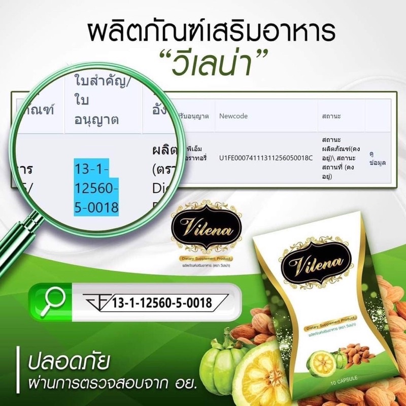 Vilena วีเลน่า [สเลนชัวร์แพคเกจใหม่ ของแท้100%] กล่องเขียว