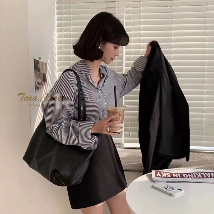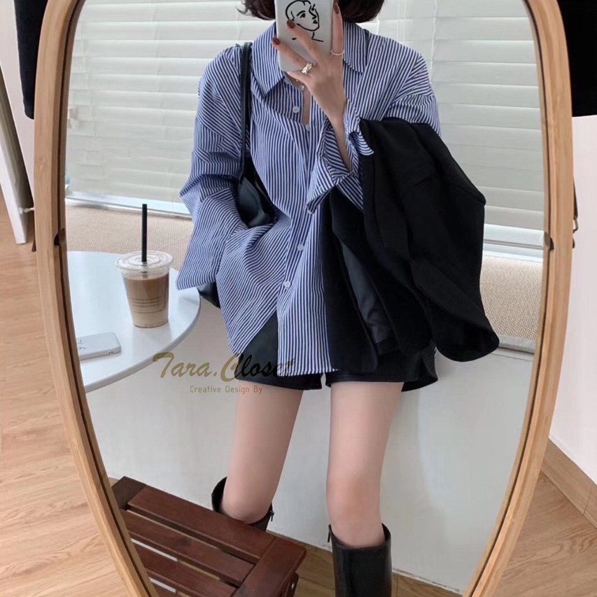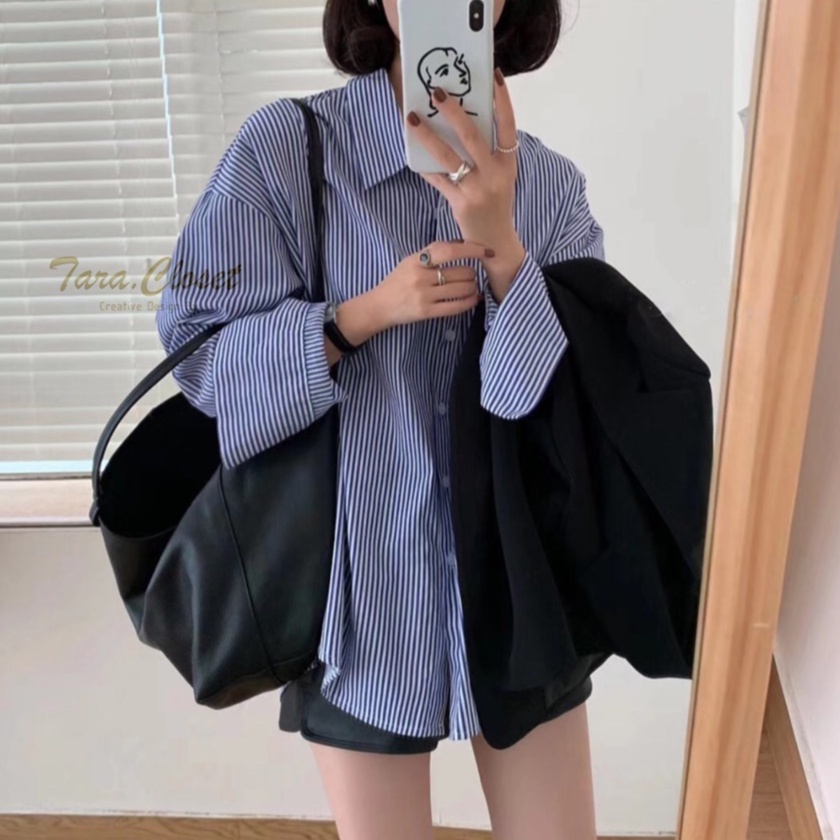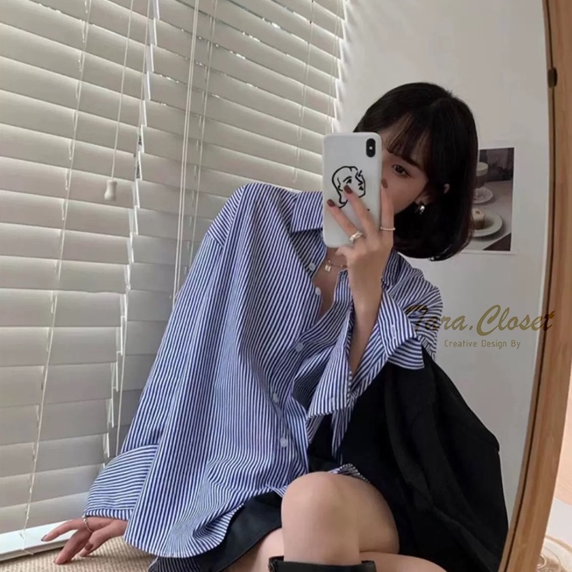 CT009 TARA Shirt เสื้อเชิ้ตหญิง แขนยาว ลายทาง สไตล์เกาหลี เนื้อผ้าคอตตอลทอผ้าอย่างดี ผ้าไม่หนามาก ผ้าใส่สบาย ไม่ร้อน