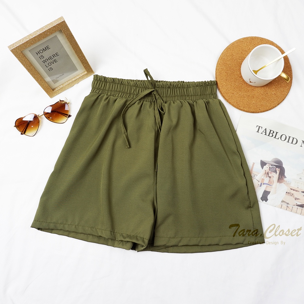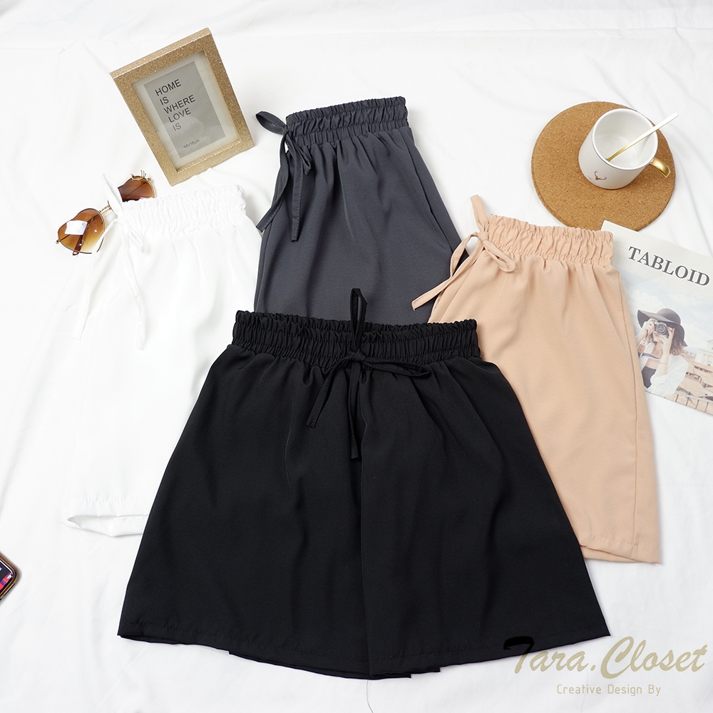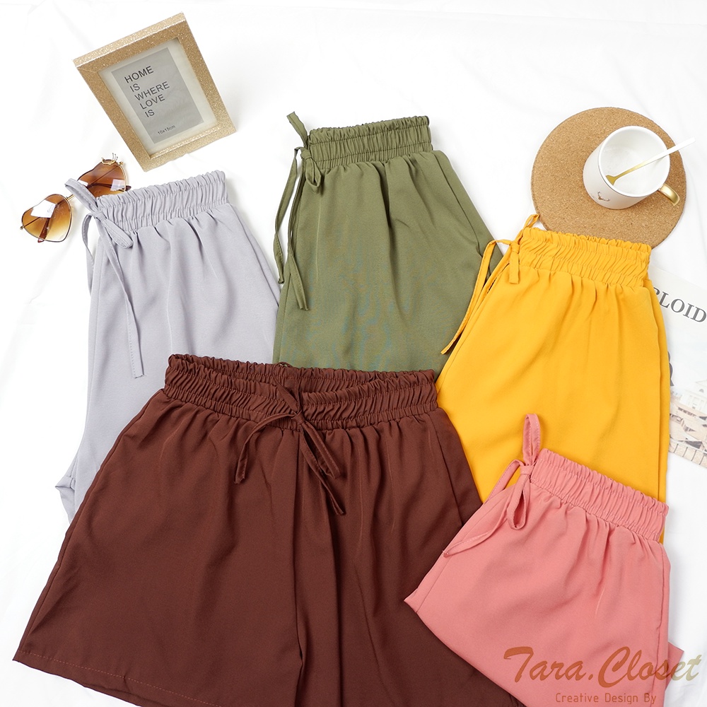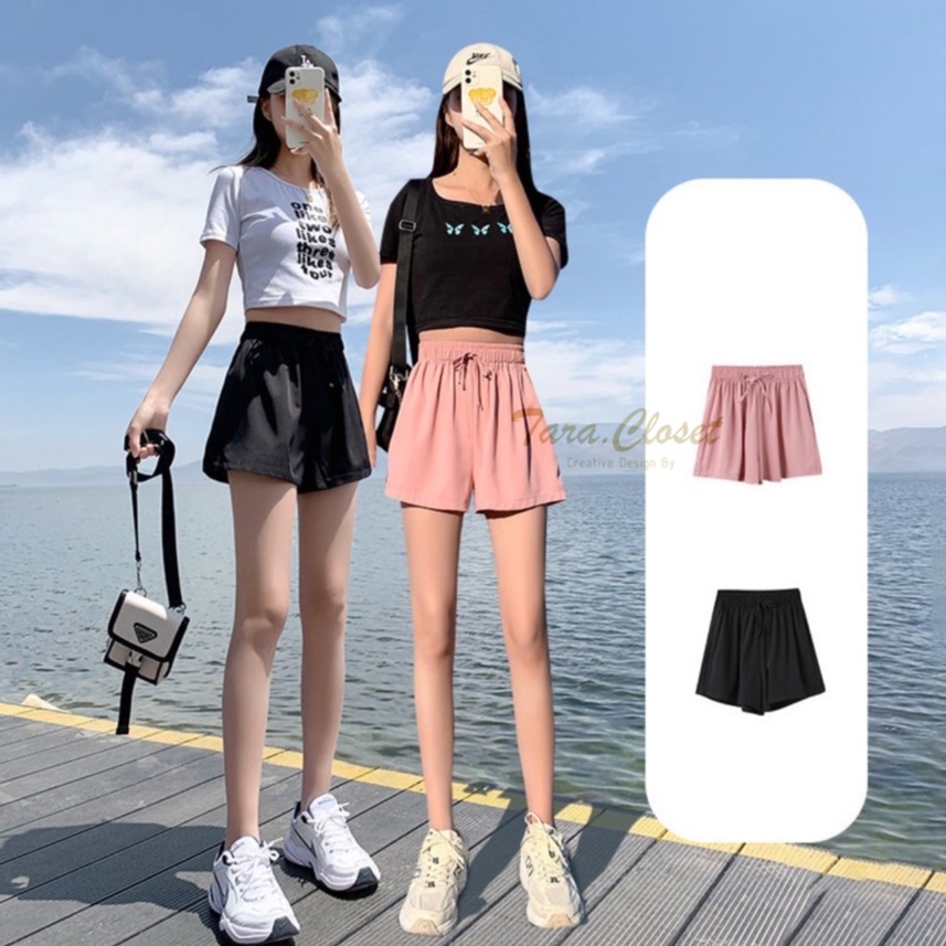 PI001 TARA Short pants กางเกงขาสั้น ทรงสปอร์ต ไม่มีกระเป๋าข้าง เอวยางยืด ผ้าไหมอิตาลี ใส่สบาย ไม่ร้อน