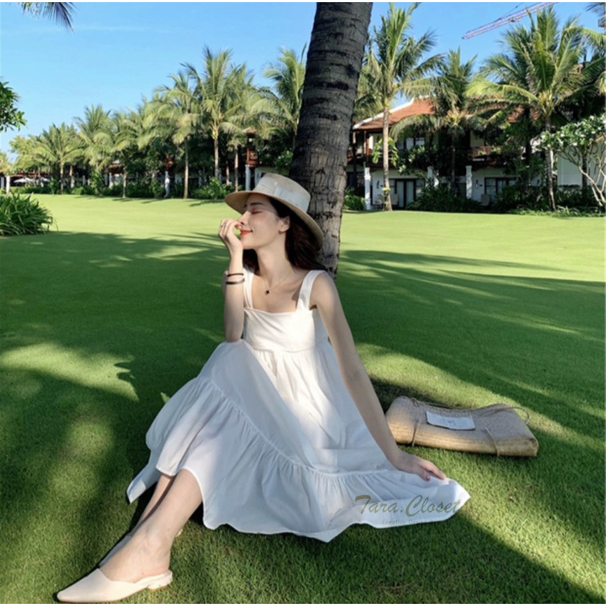 PE057 TARA Dress ชุดเดรสยาวสายเดี่ยว มีโบว์ผูกหลัง ระบายชาย เนื้อผ้าไหมอิตาลี ผ้าเบาพริ้ว สวย ใส่สบาย