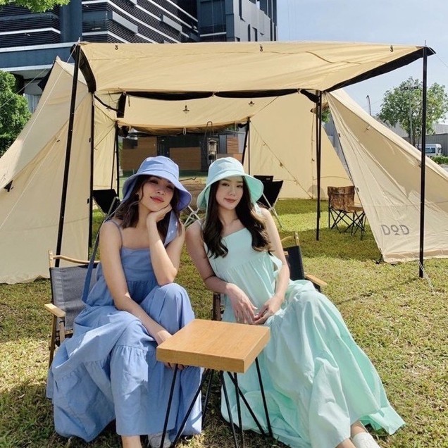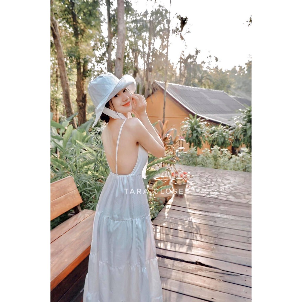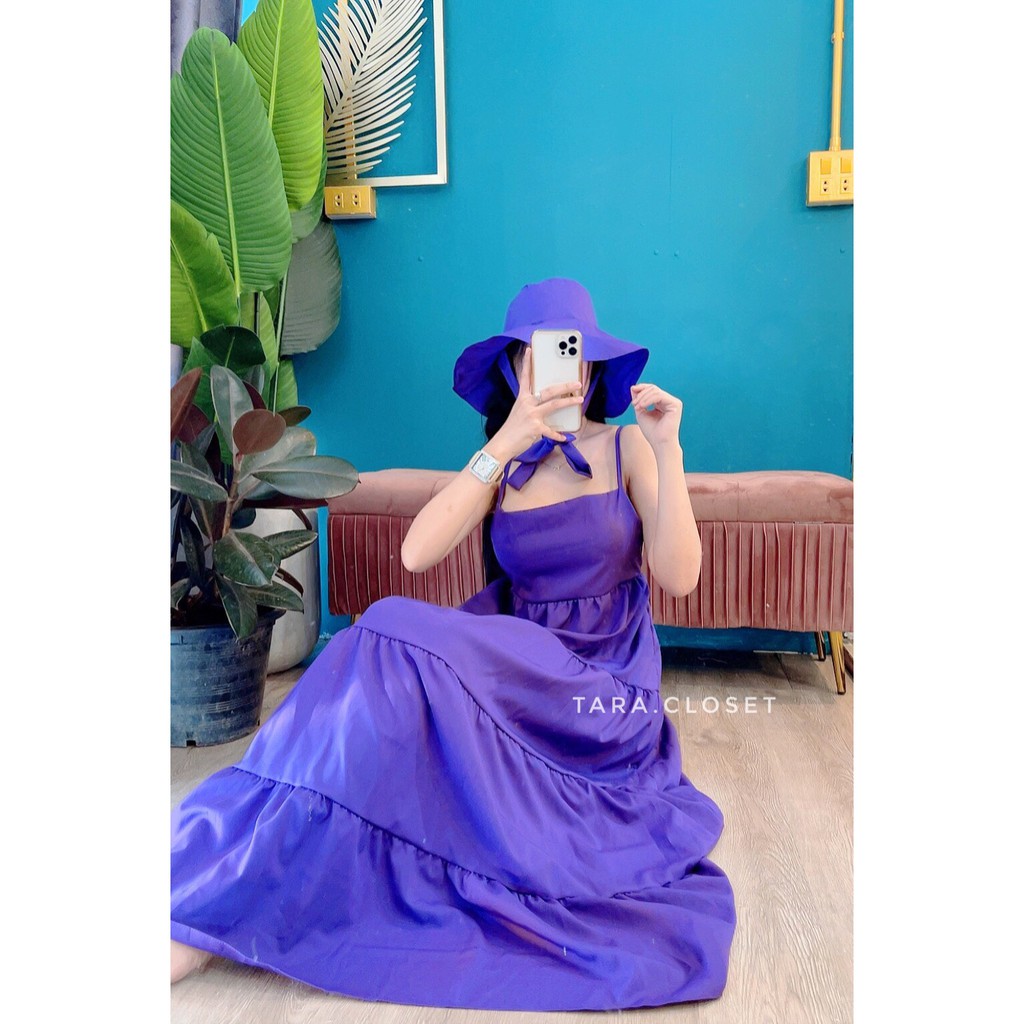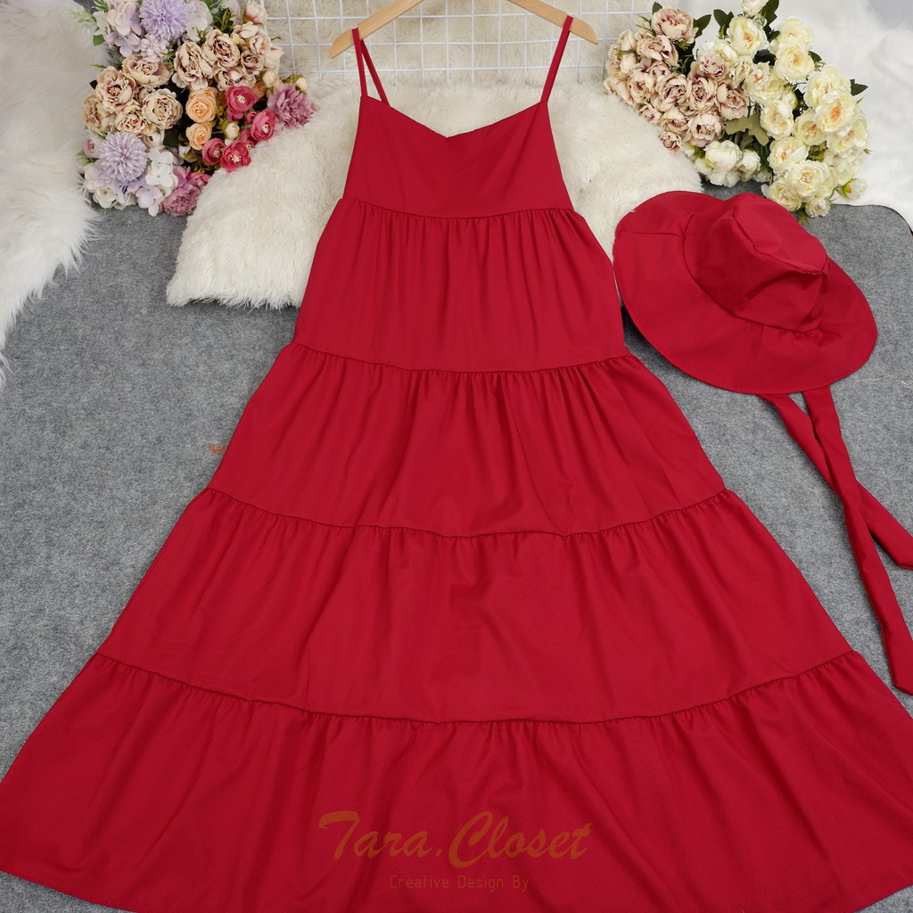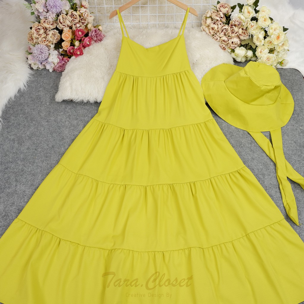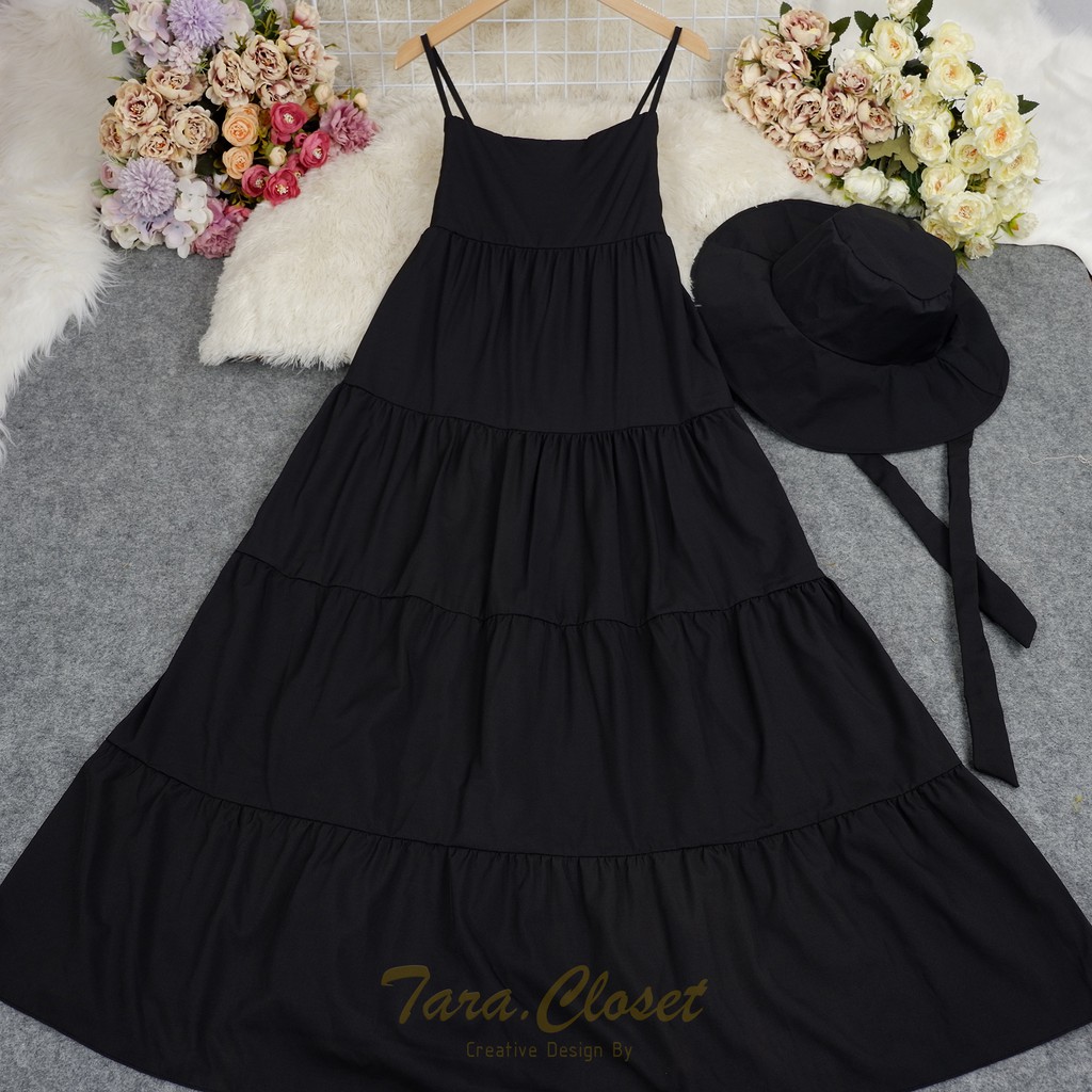 PE051 TARA Set Dress สายเดี่ยวเดรส ชุด+หมวก มียางสม็อกหลัง พร้อมหมวกปีกกว้าง เนื้อผ้าไหมอิตาลี ผ้าสวย พริ้ว เบาแต่ไม่บาง