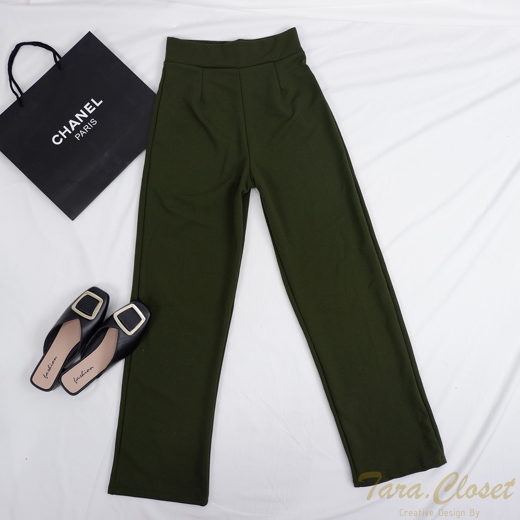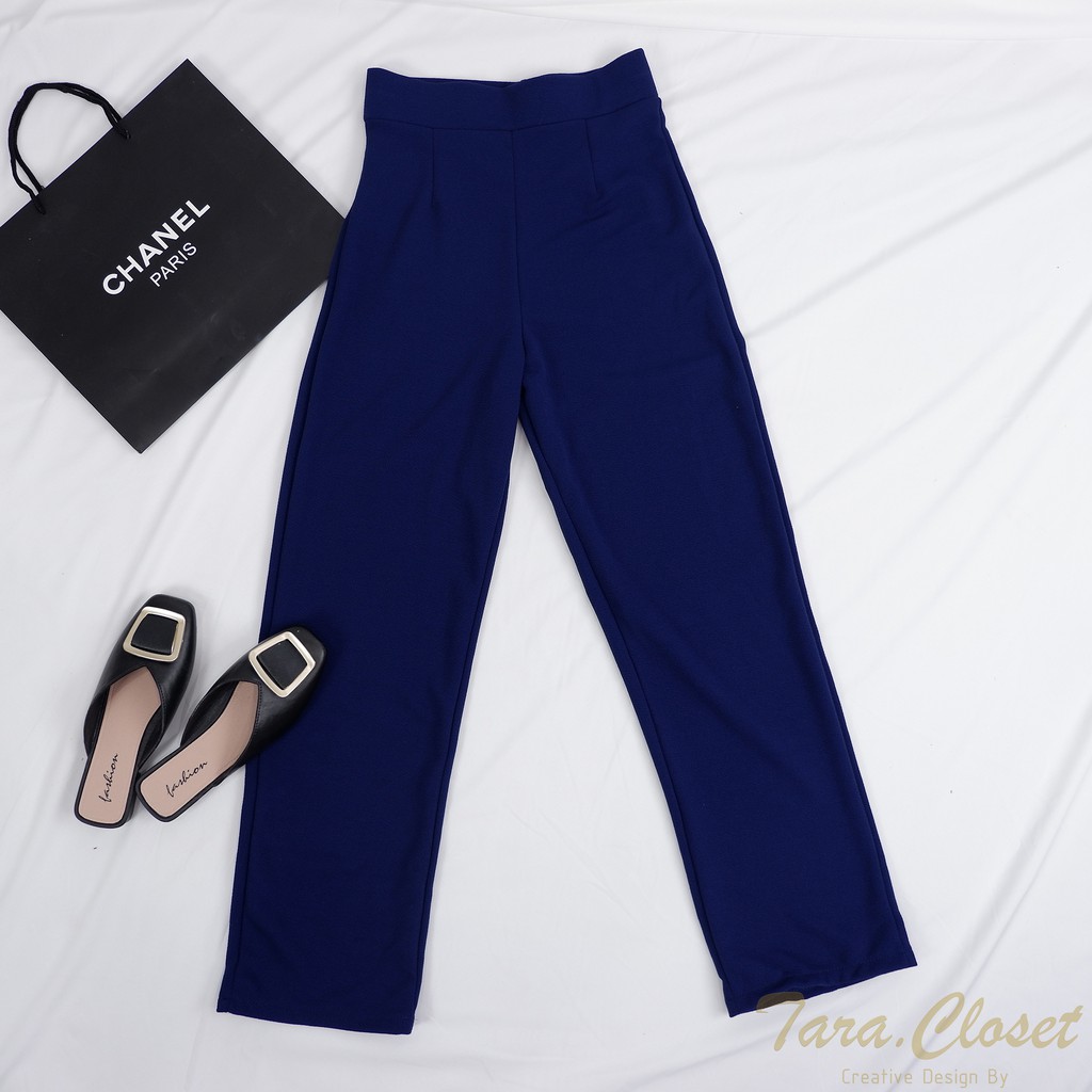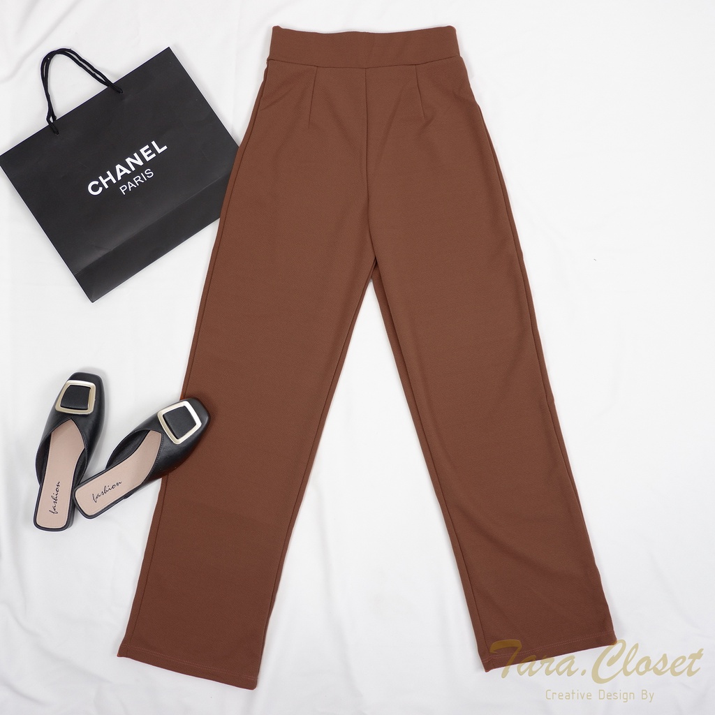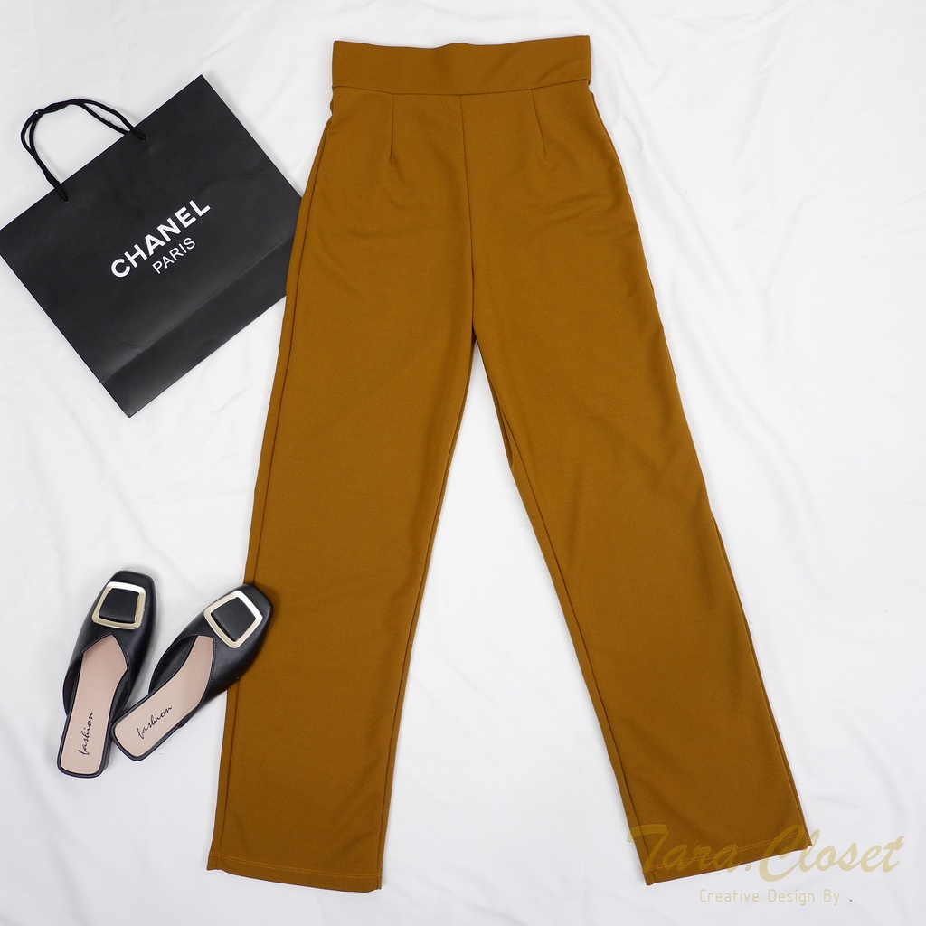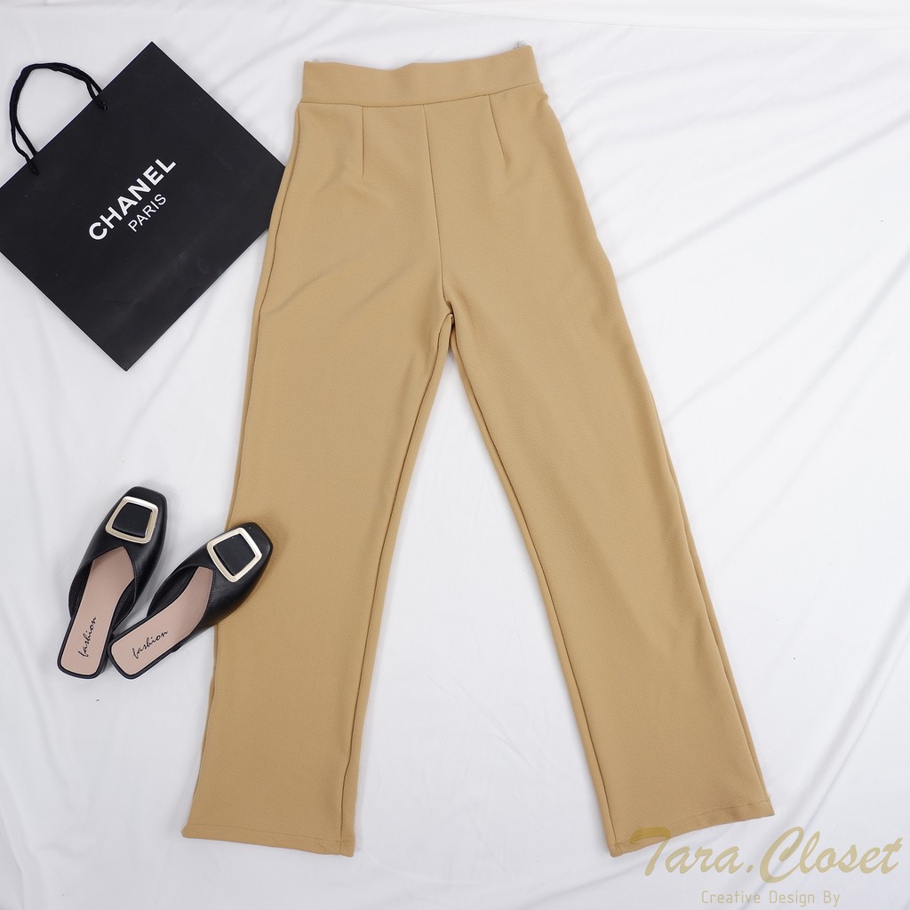 PW501 TARA Long pants กางเกงขายาว เอวสูง ทรงขากระบอกกลาง ไม่มีกระเป๋า เนื้อผ้าวูลเวฟ ผ้ายืด ใส่สบาย