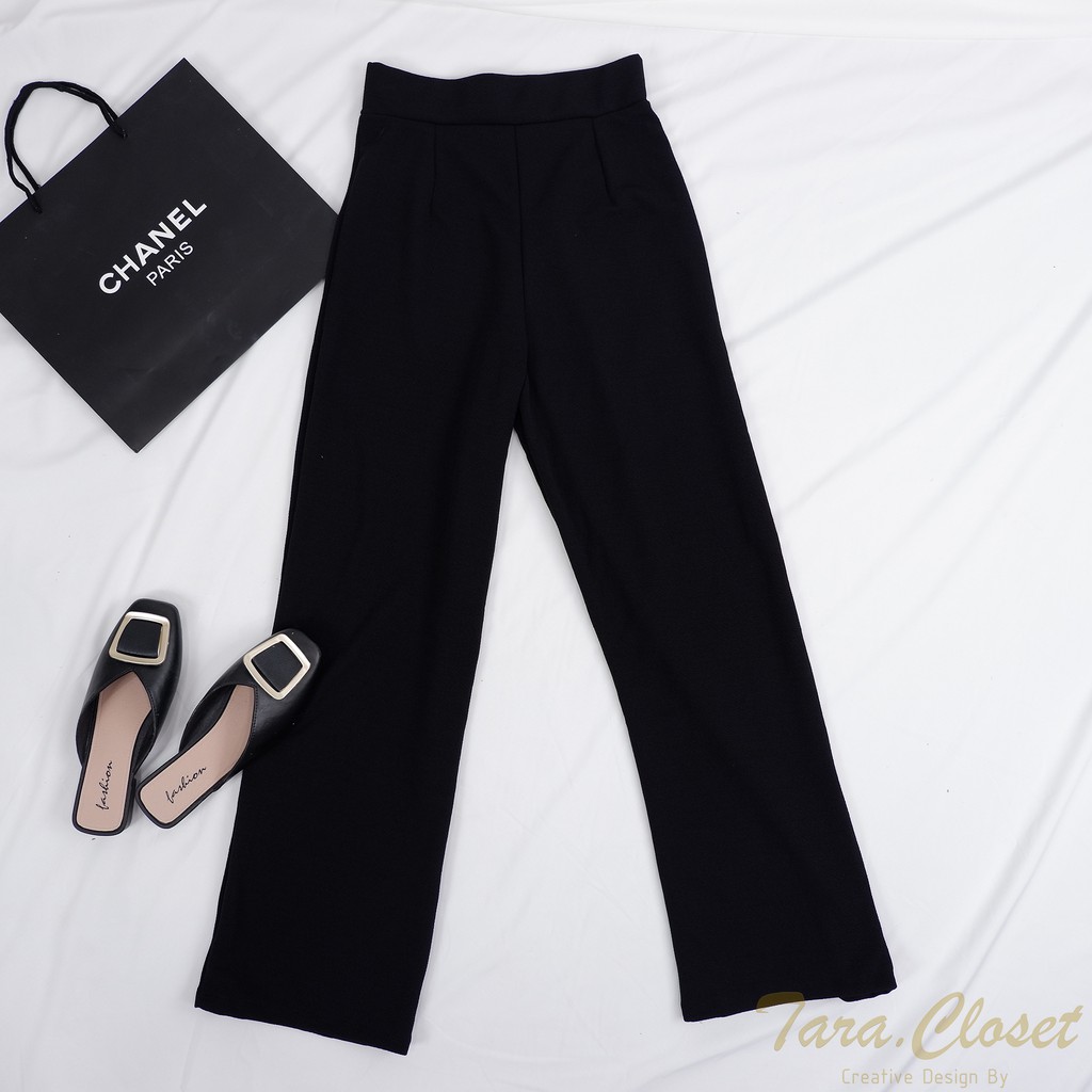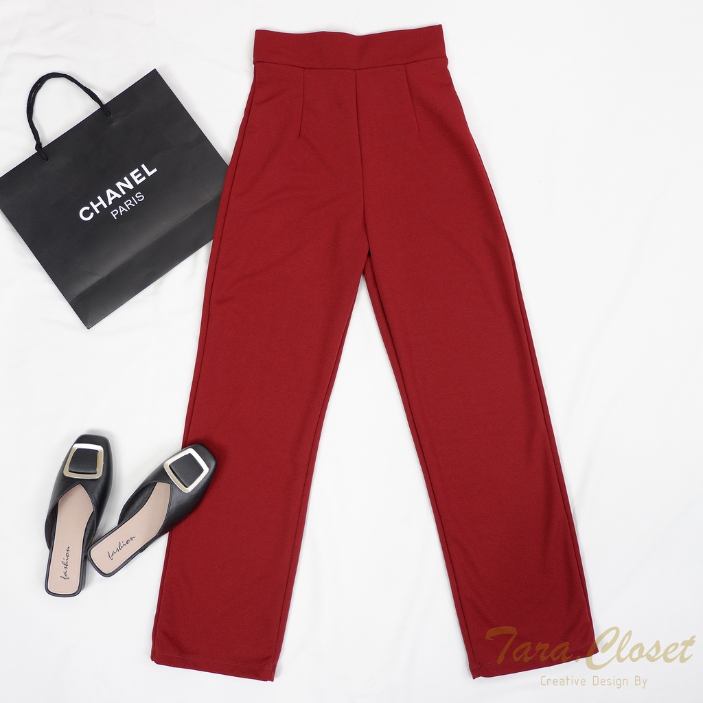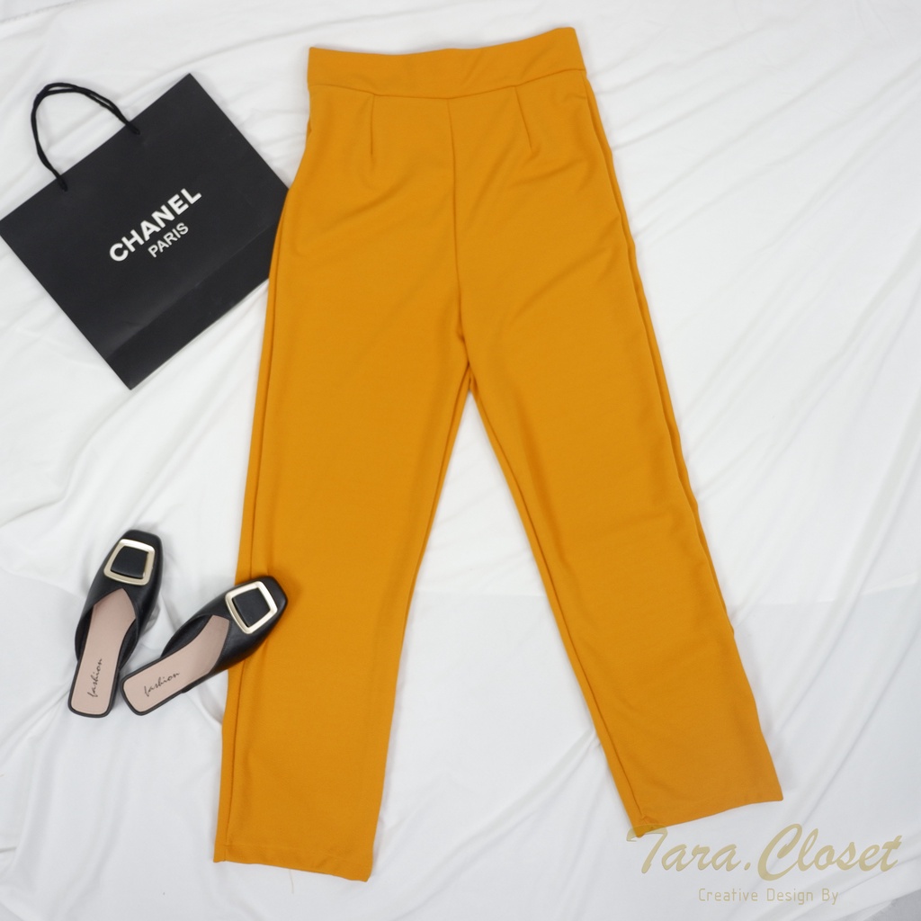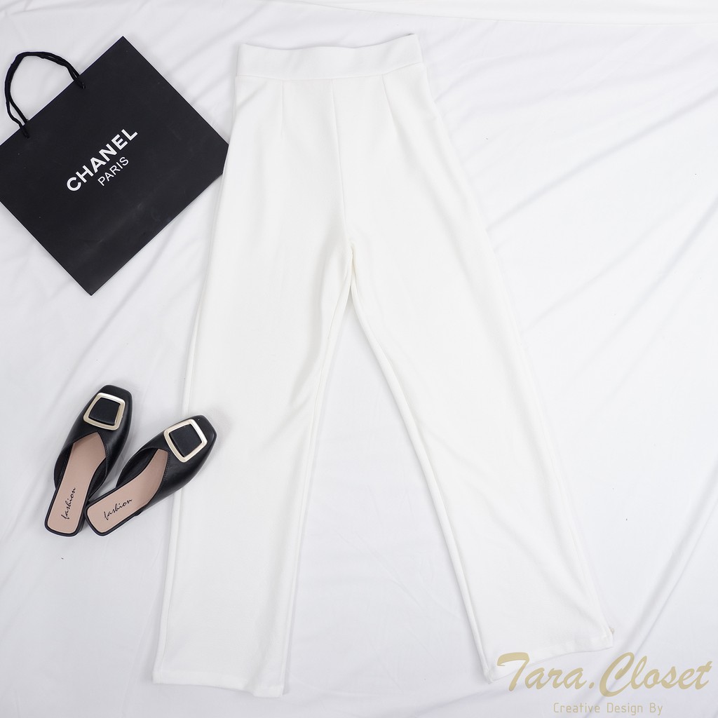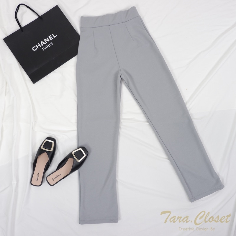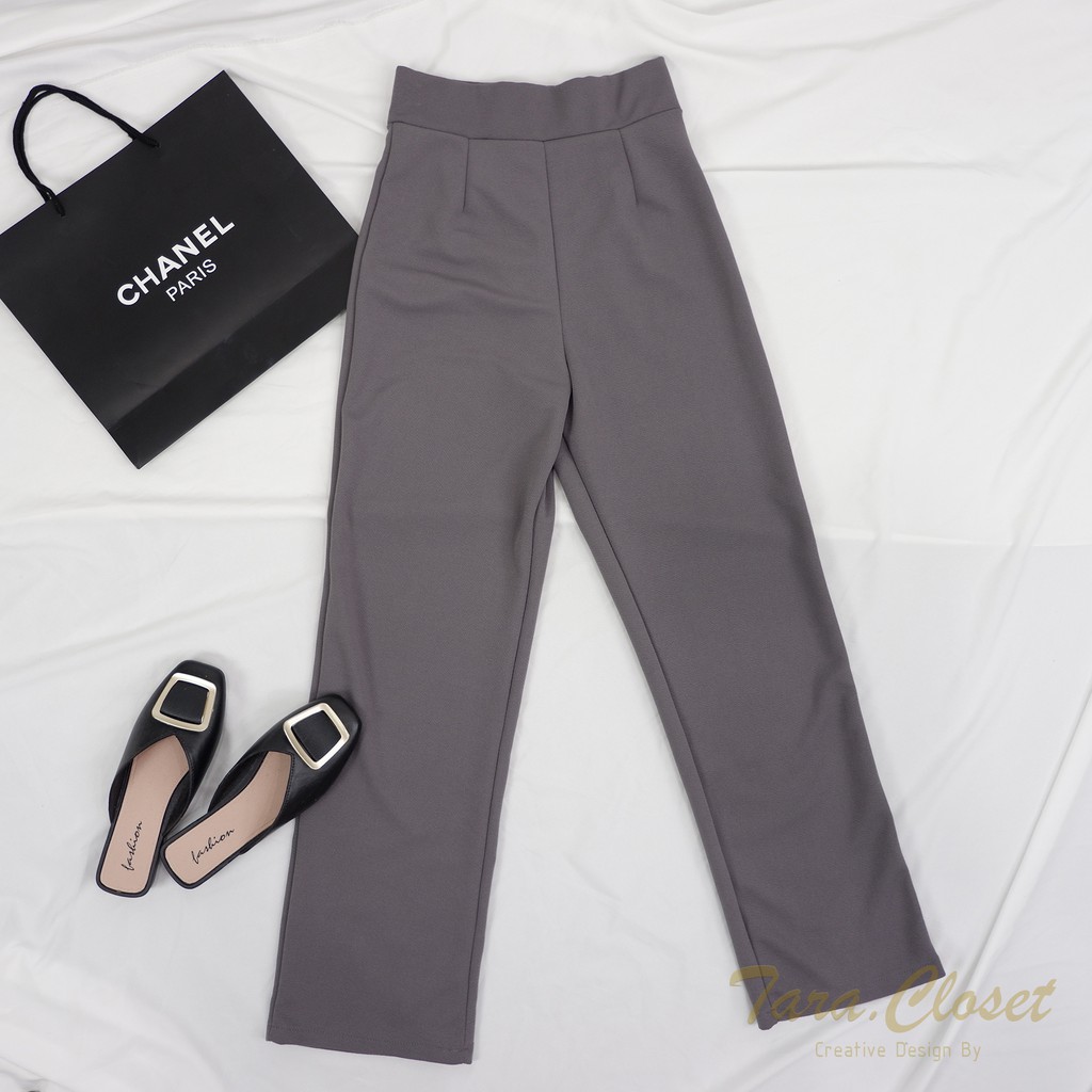PW501 TARA Long pants กางเกงขายาว เอวสูง ทรงขากระบอกกลาง ไม่มีกระเป๋า เนื้อผ้าวูลเวฟ ผ้ายืด ใส่สบาย