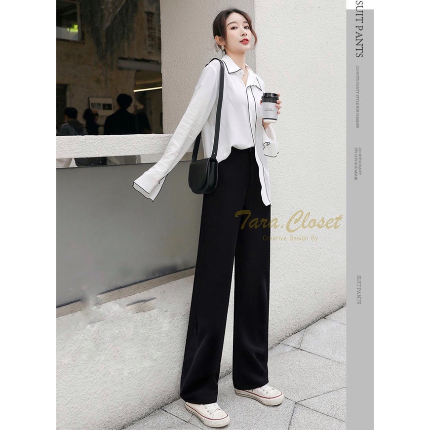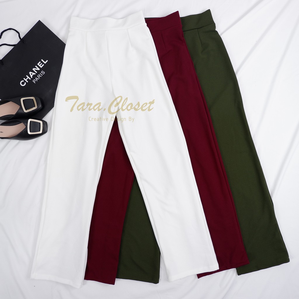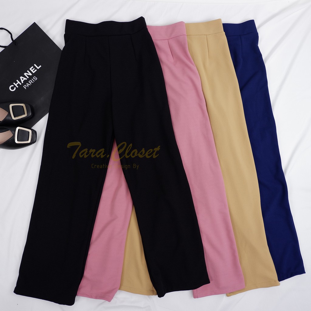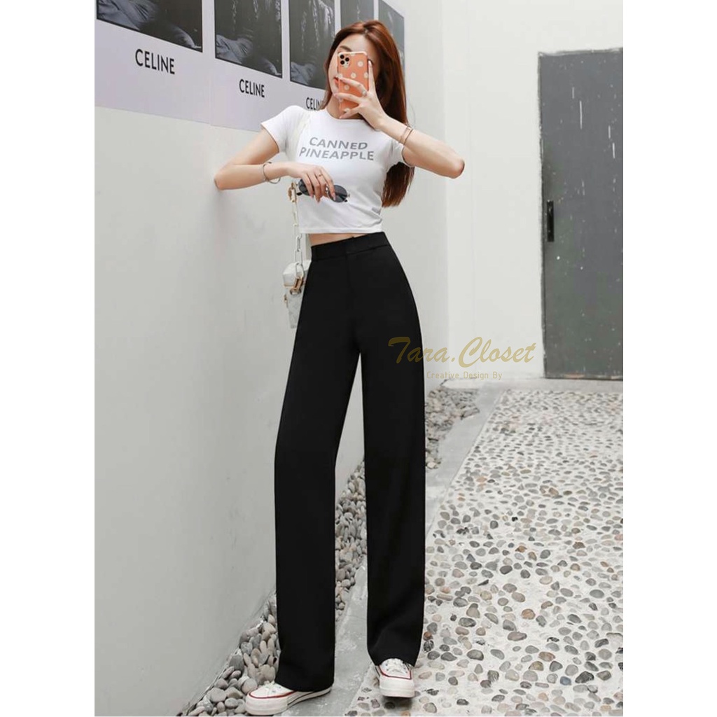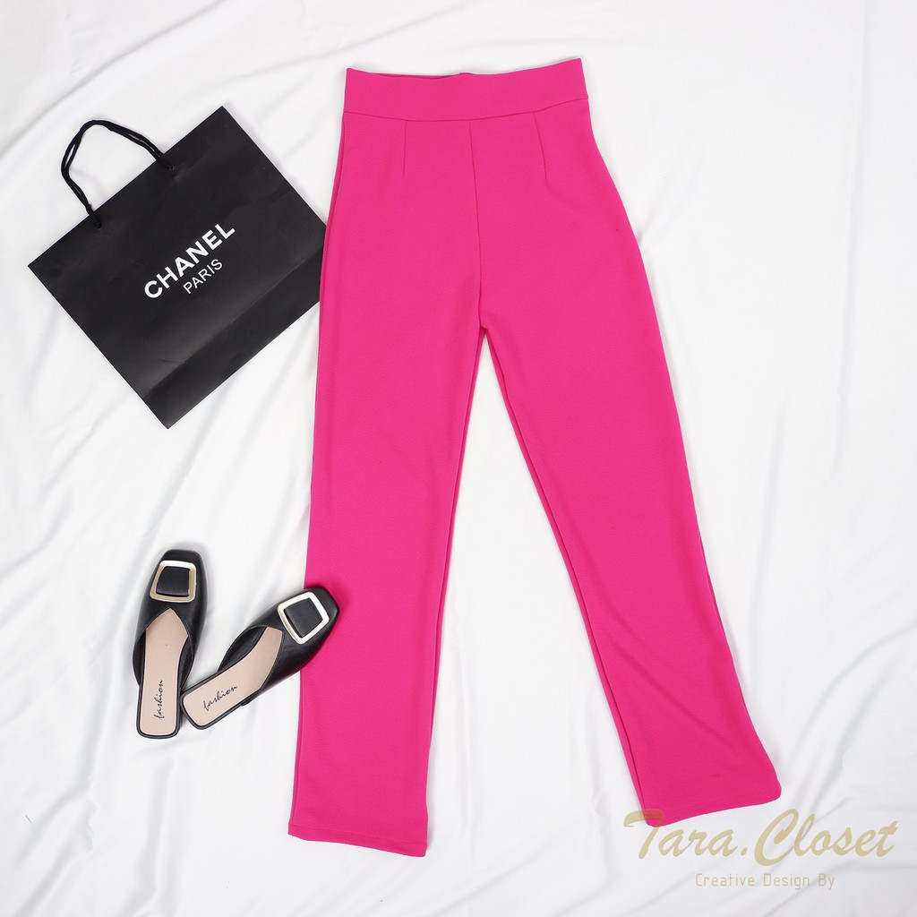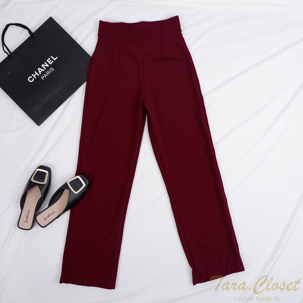 PW501 TARA Long pants กางเกงขายาว เอวสูง ทรงขากระบอกกลาง ไม่มีกระเป๋า เนื้อผ้าวูลเวฟ ผ้ายืด ใส่สบาย