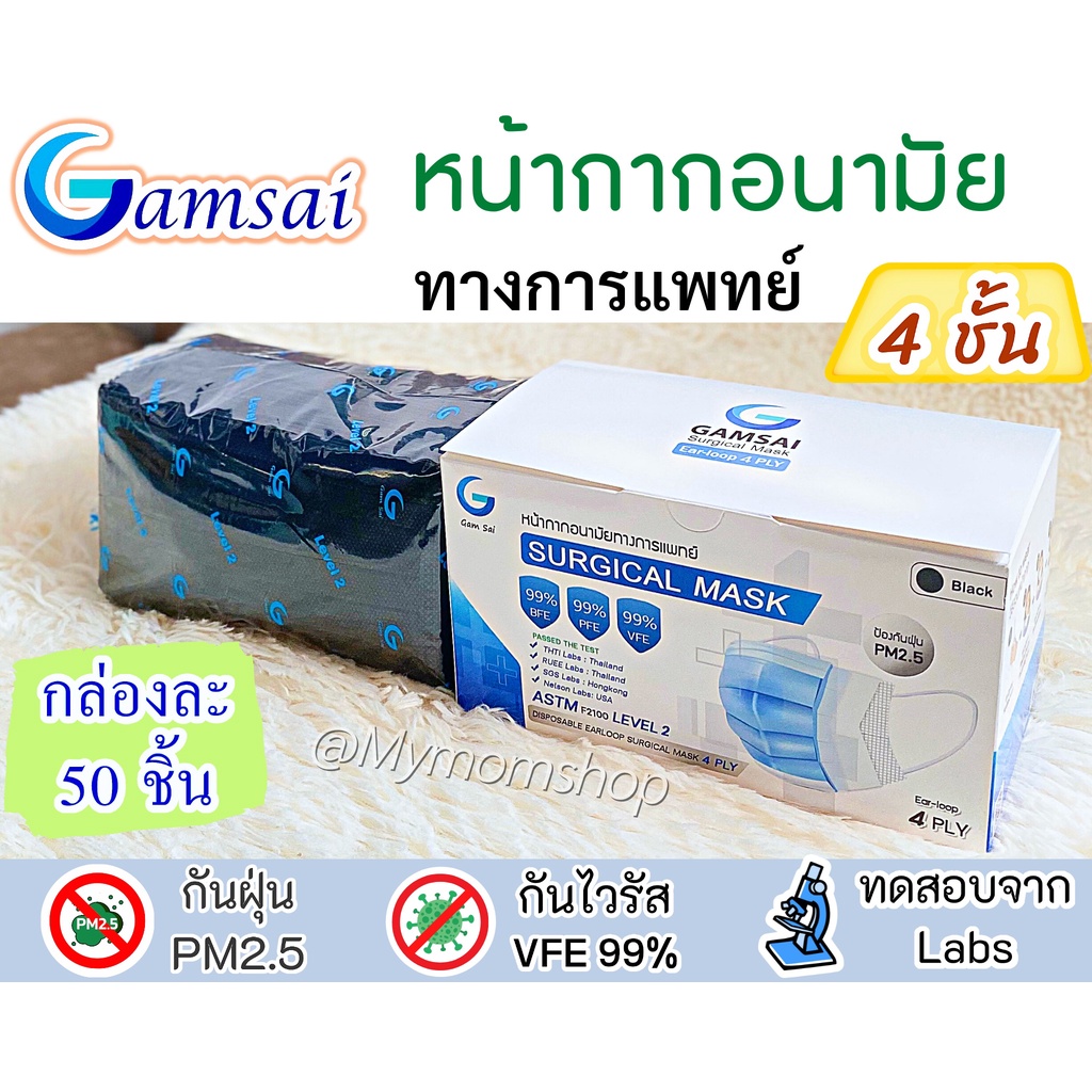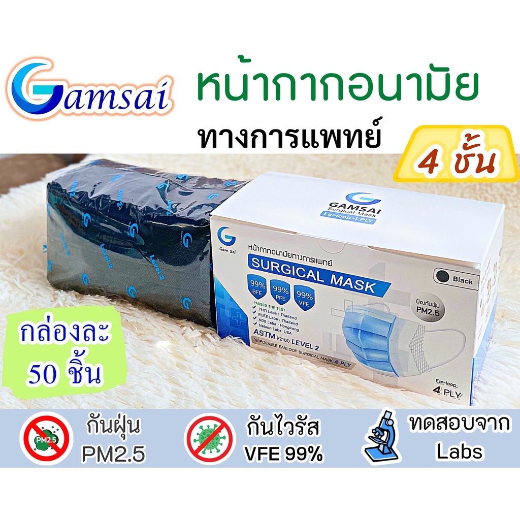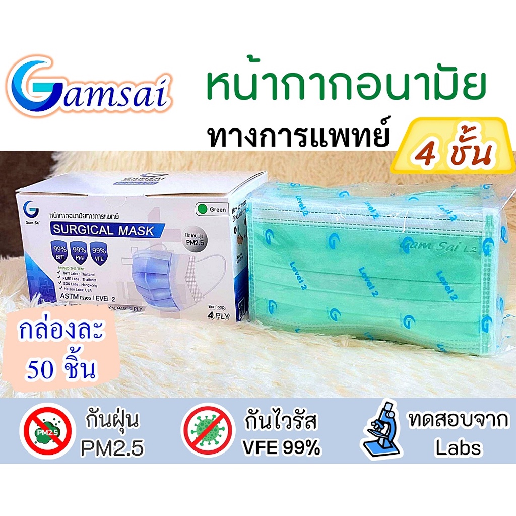 สั่ง2กล่อง แถมฟรี!! ทิชชู่เปียก🎁GAMSAI MASK หน้ากากอนามัย ผู้ใหญ่ แก้มใส 4ชั้น (50ชิ้น) ของแท้#