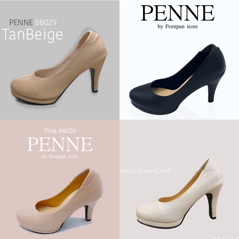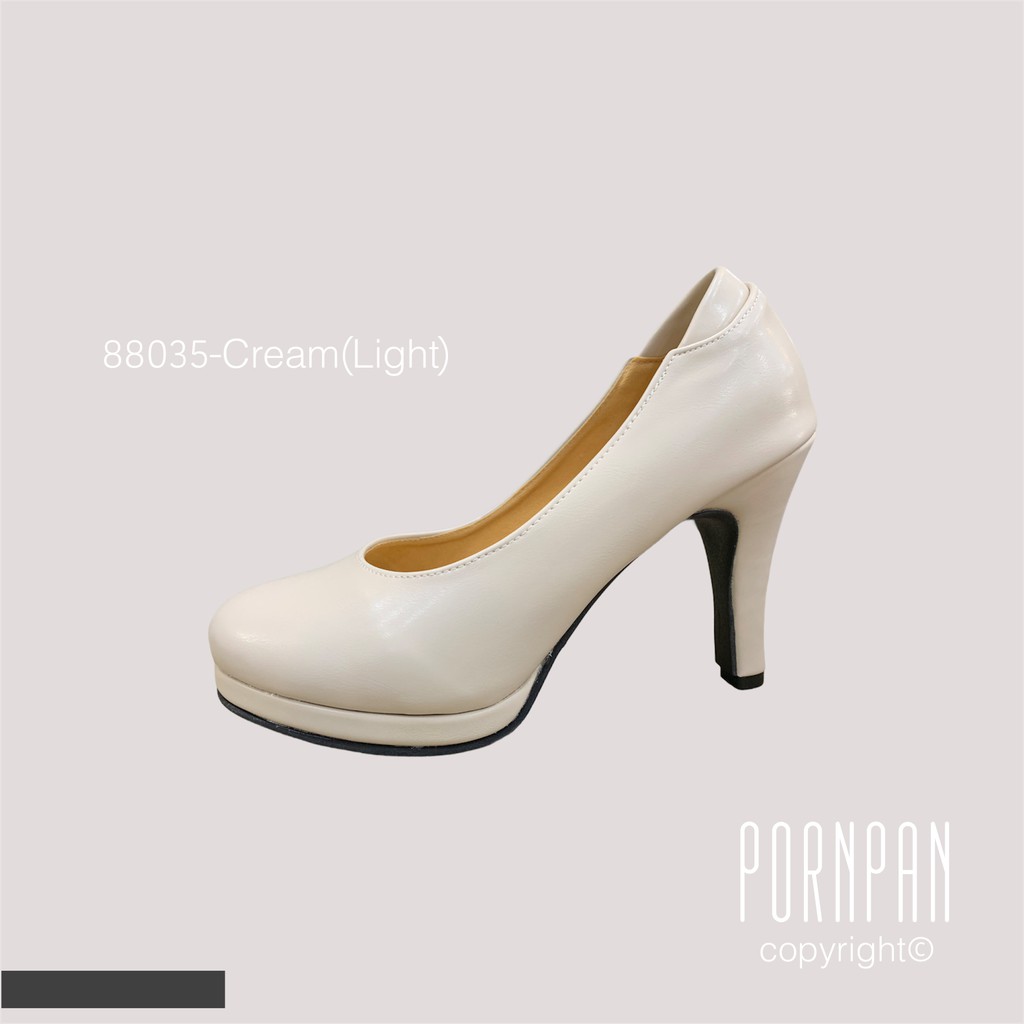 รองเท้าคัชชูส้นสูง ทรงหัวมน รองเท้าคัชชูผู้หญิง นิสิต นักศึกษา ทำงาน สูง 3.5 นิ้ว ครีม ดำ ขาว