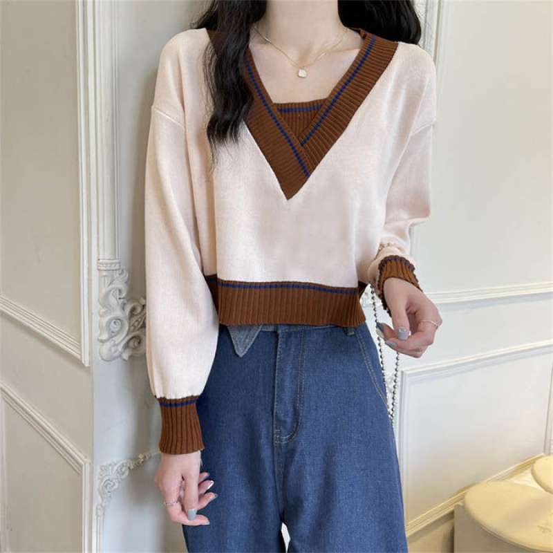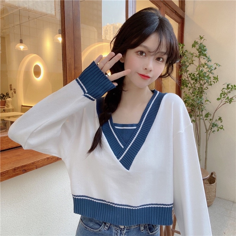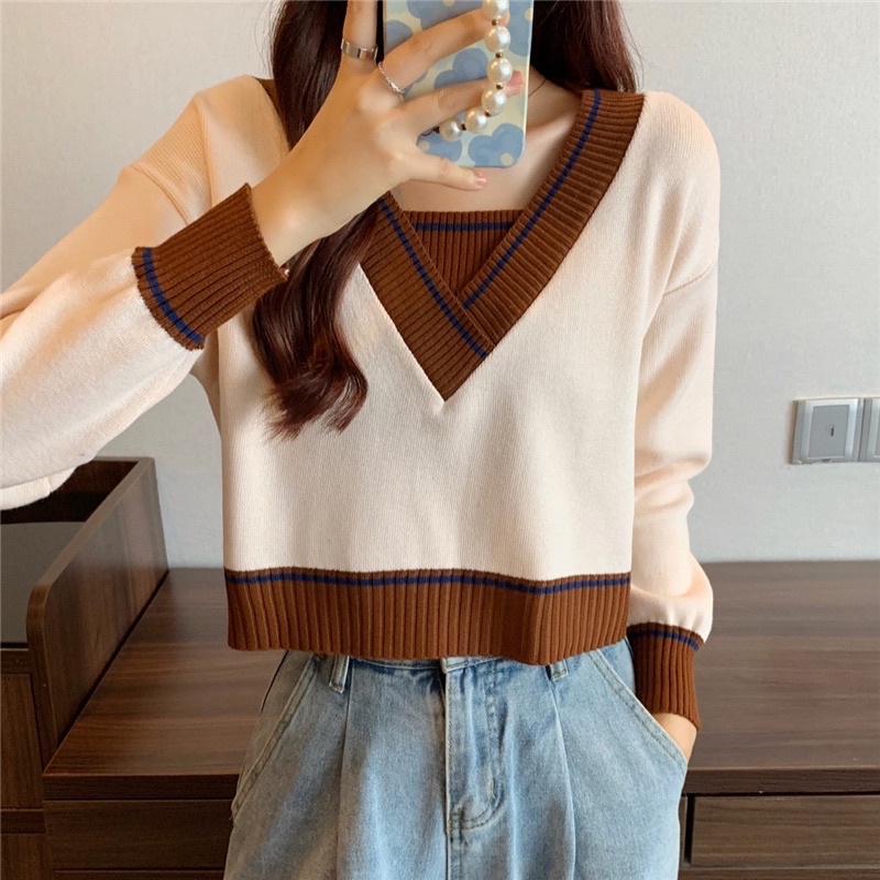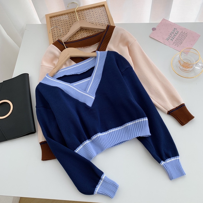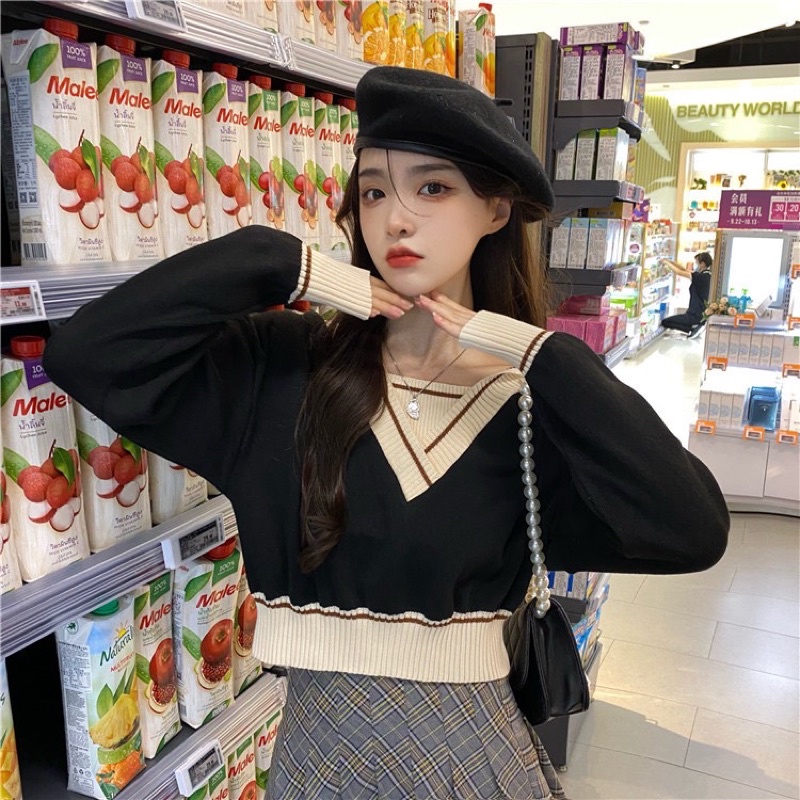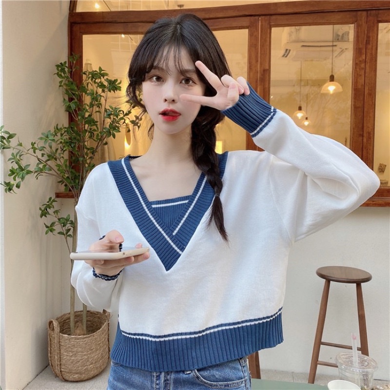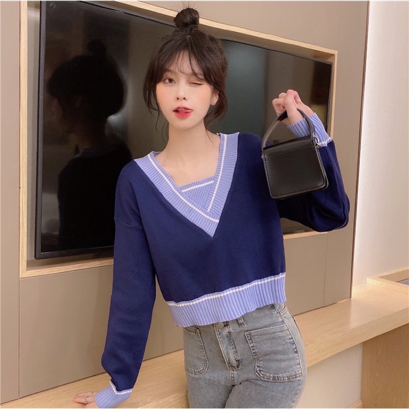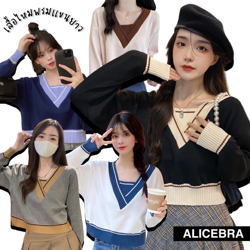 🌟𝗔𝗟𝗜𝗖𝗘𝗕𝗥𝗔🌟เสื้อแขนยาว ผ้าไหมพรม สไตล์เกาหลี คอวีบังทรงหน้า แบบสวม