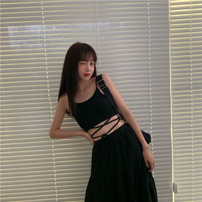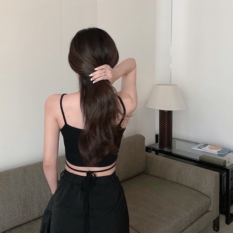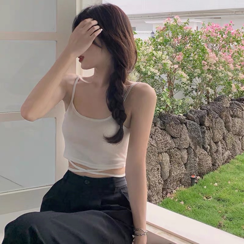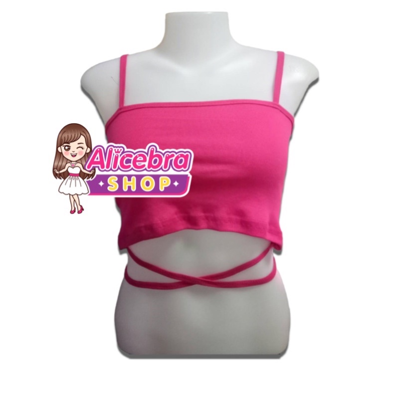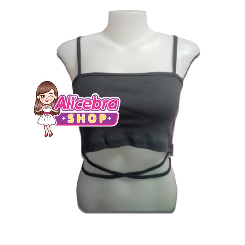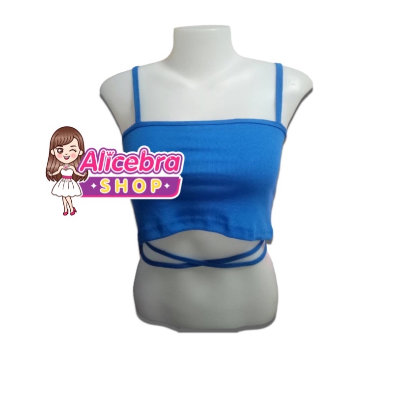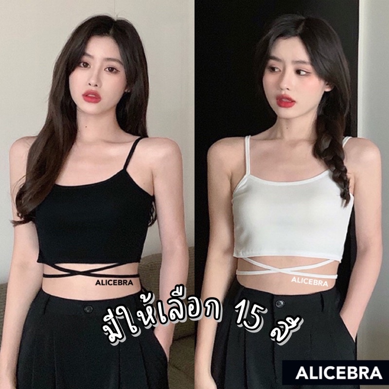 🌟𝗔𝗟𝗜𝗖𝗘𝗕𝗥𝗔🌟 ครอปสายเดี่ยวผูกเอว สายเดี่ยวพร้อมสายไขว้ผูกเอว สุดเก๋ มินิครอป ราคาถูก