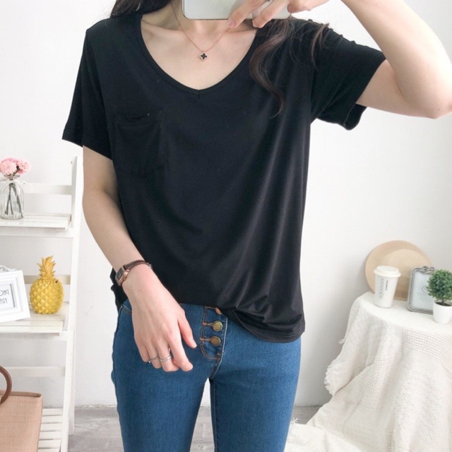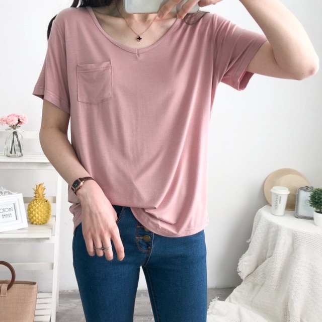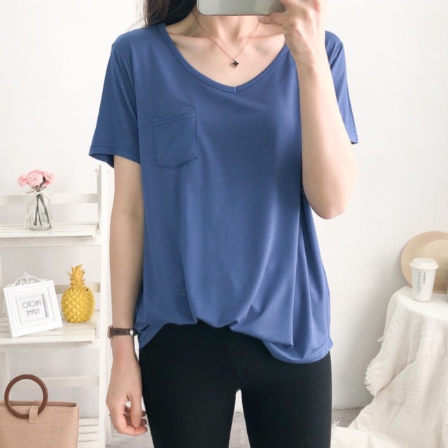 🌟𝗔𝗟𝗜𝗖𝗘𝗕𝗥𝗔🌟พร้อมส่ง10สี!! เสื้อยืด คอวี กระเป๋าหน้า ผ้าเรยอน ใส่สบาย ไม่ร้อน เสื้อยืดแฟชั่น เสื้อยืดน่ารัก