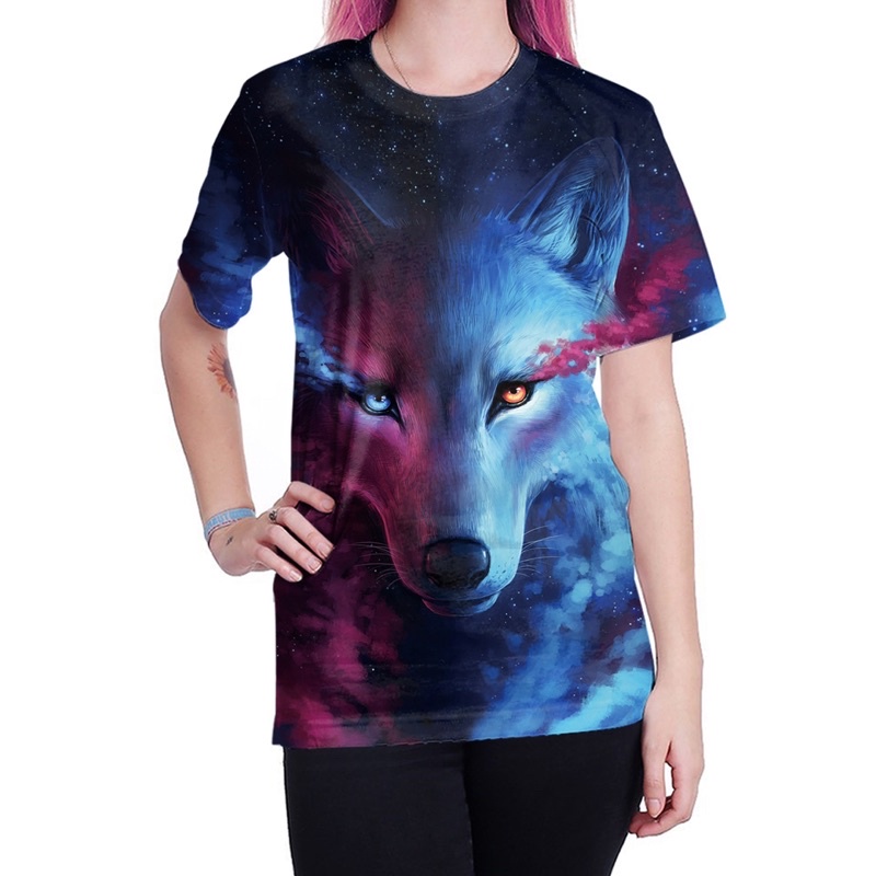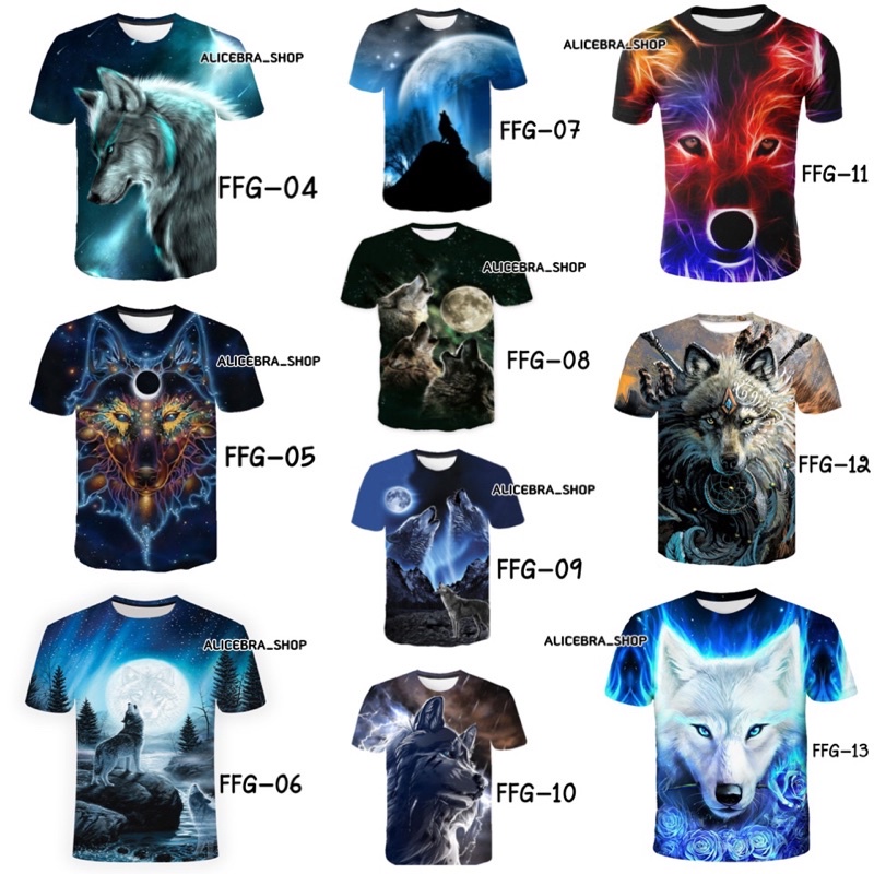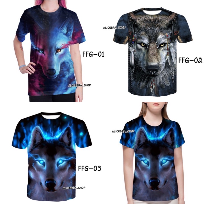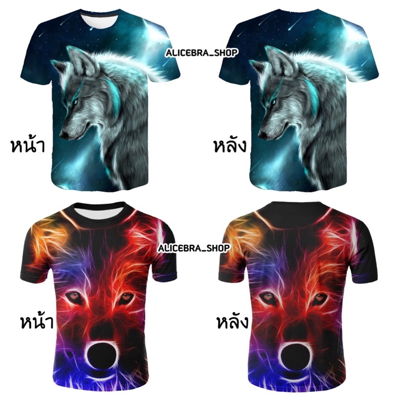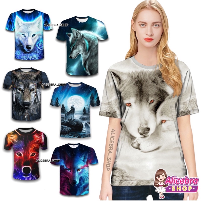 🌟𝗔𝗟𝗜𝗖𝗘𝗕𝗥𝗔🌟เสื้อยืดคอกลม เสื้อแขนสั้น พิมพ์ลายหมาป่า เสื้อ3D ใส่ได้ชายหญิง มี4ขนาด