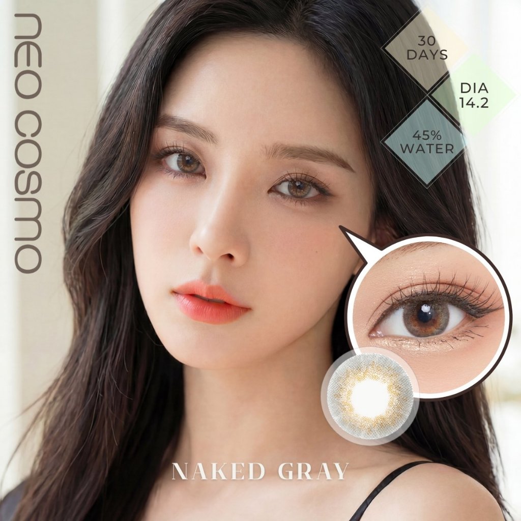 คอนแทคเลนส์ Naked Gray (Neo Cosmo) สีเทาไม่มีขอบ สายฝอ เนียนเหมือนตาจริง มีส่งด่วนใน กทม.