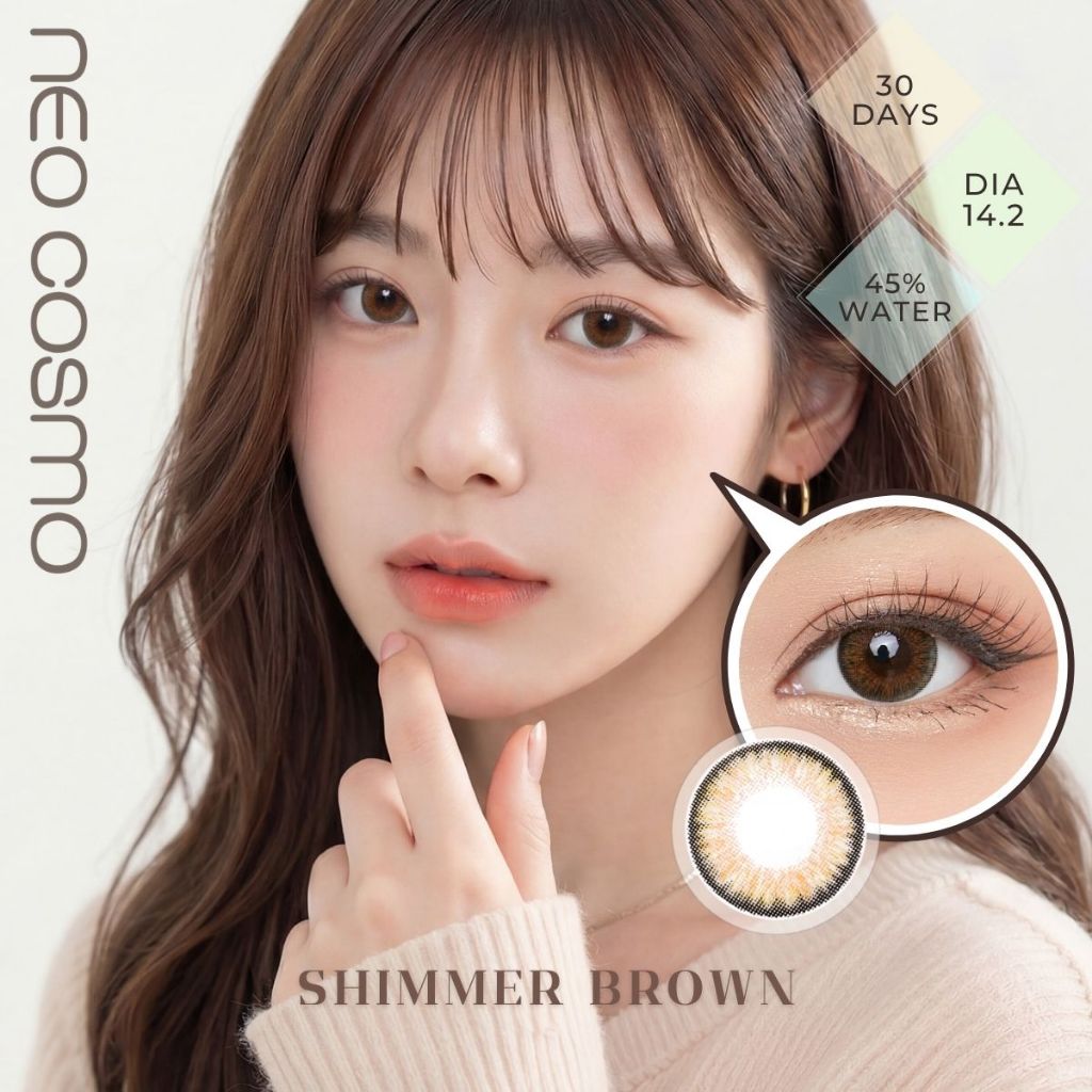 คอนแทคเลนส์ Shimmer Brown (Neo Cosmo) สีน้ำตาลตัดขอบดำ สายฝอ ช่วยให้ตาไม่ลอย มีส่งด่วนใน กทม.