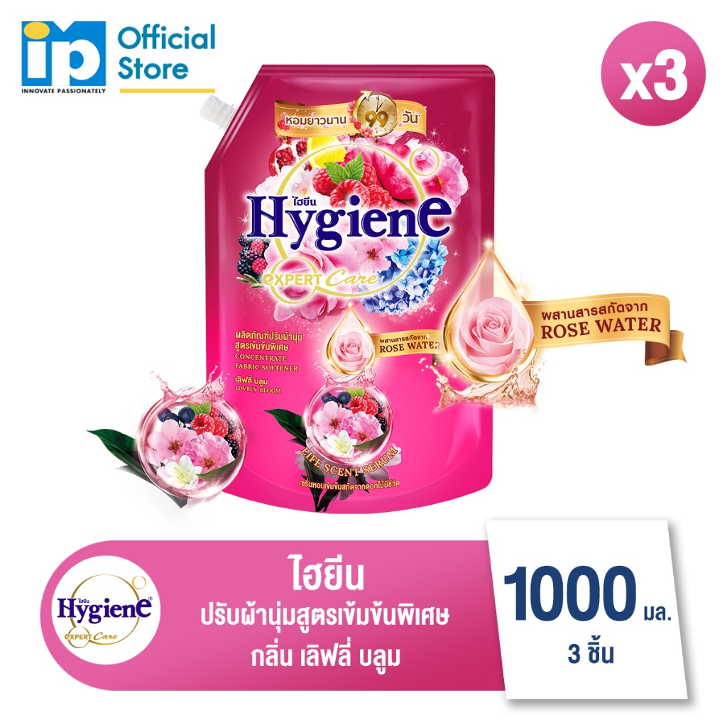 ไฮยีน เอ็กซ์เพิร์ท แคร์ ไลฟ์เซ้นท์ น้ำยาปรับผ้านุ่มสูตรเข้มข้นพิเศษ กลิ่น เลิฟลี่ บลูม 1000 มล. แพ็ค 3ถุง