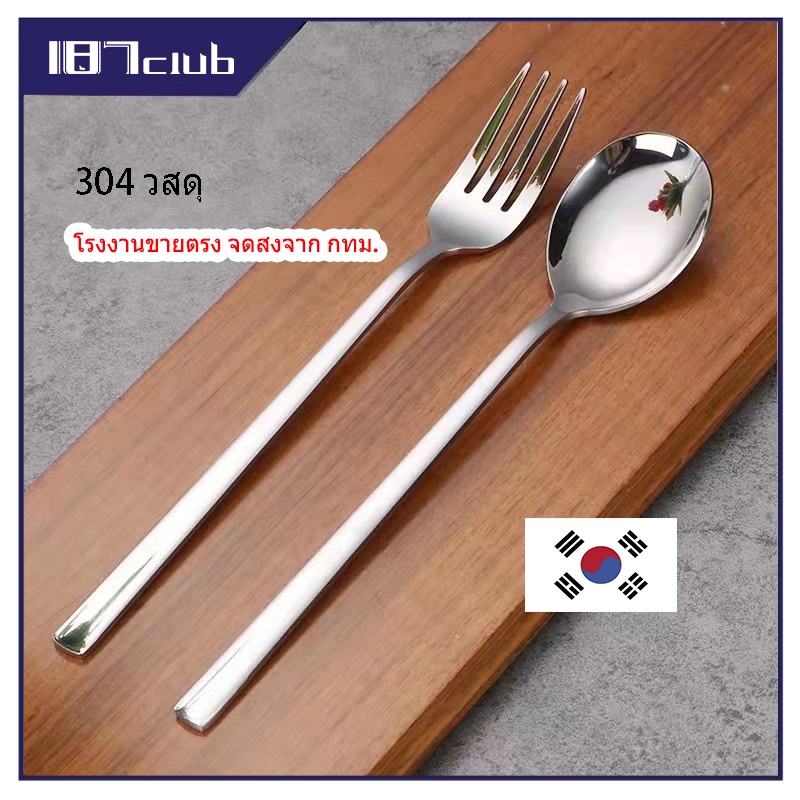 ชุดช้อนส้อมเกาหลี ช้อนกลม ช้อนซุป 1 คู่ ยาว 21ซม เนื้อสแตนเลสตัน มี14แบบ082