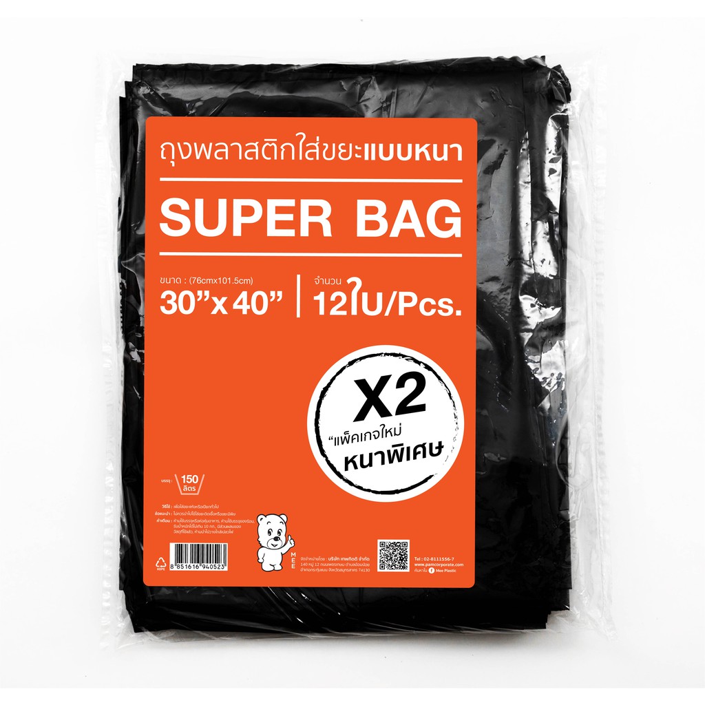 ถุงขยะเกรดเอ สีดำ MEE SUPER BAG ครบทุกขนาด ไม่มีกลิ่นฉุน