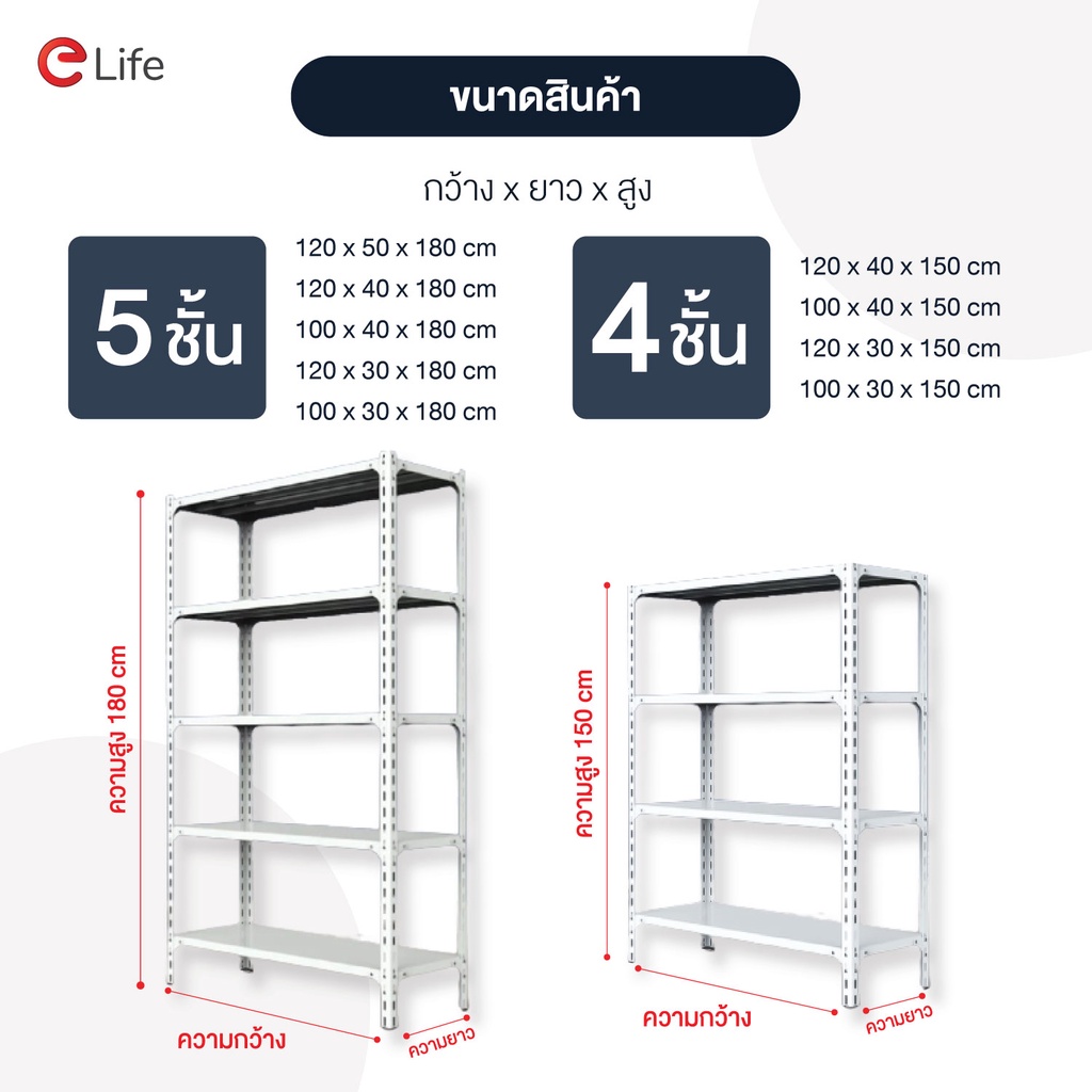 Elife ชั้นวางของ [รุ่นหนาพิเศษ] เหล็ก แข็งแรง X2 4,5ชั้น ออกใบกำกับได้ วางสินค้า เหล็ก ใช้ในบ้าน โกดัง รองรับ30กก/ชั้น