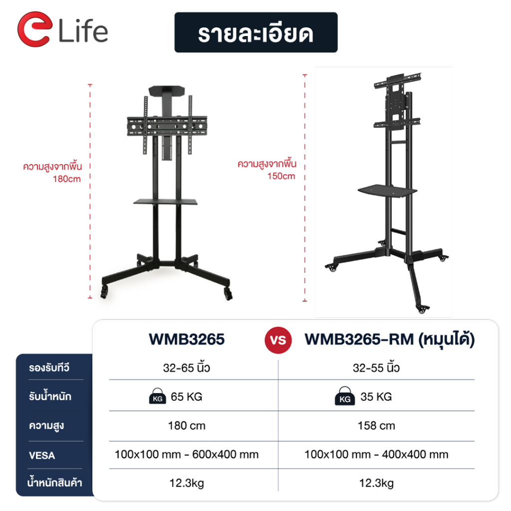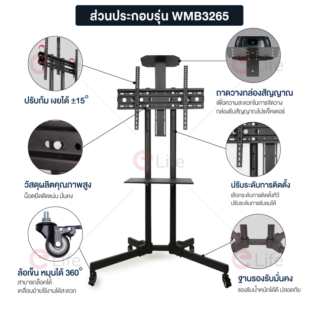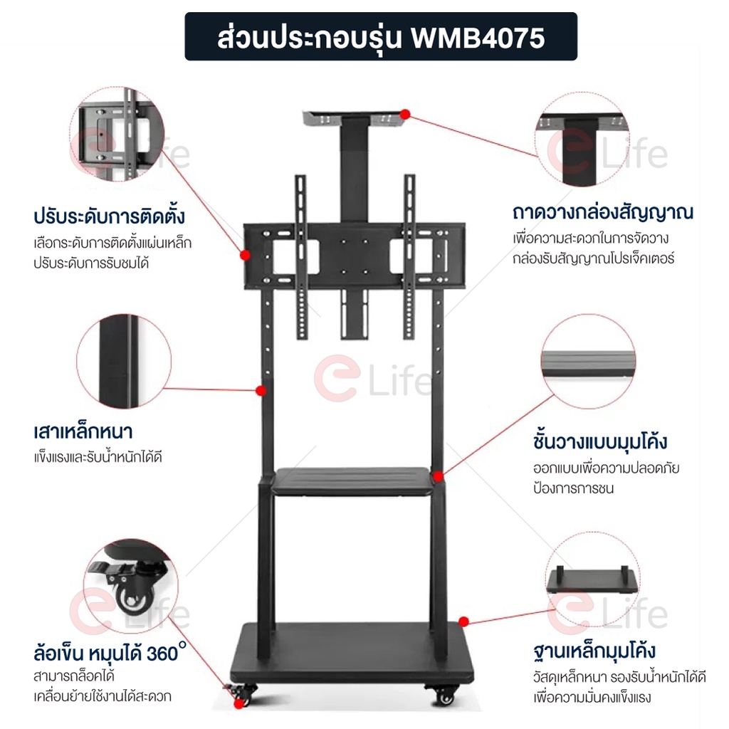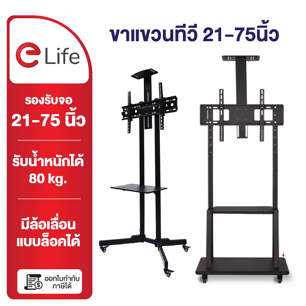 Elife ขาแขวนทีวี ขาตั้งทีวี ตั้งพื้น 21-120 นิ้ว สูง190cm สีขาว สีดำ หมุนได้ ขาทีวีตั้งพื้น แบบเหล็ก ขาตั้งมีล้อ