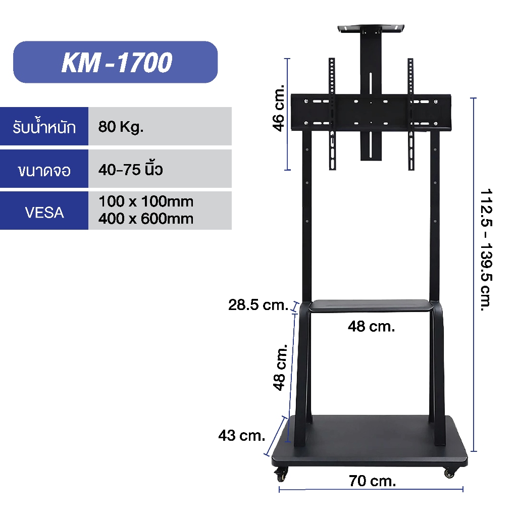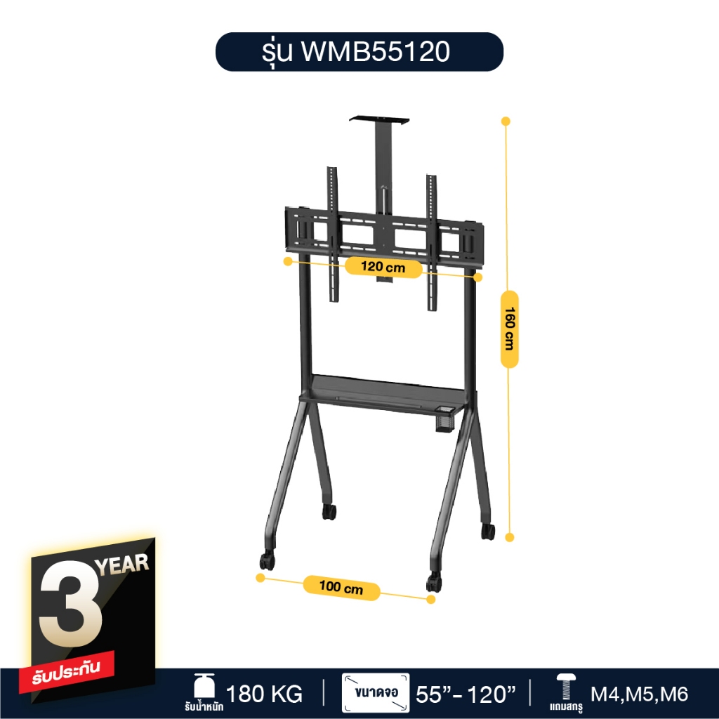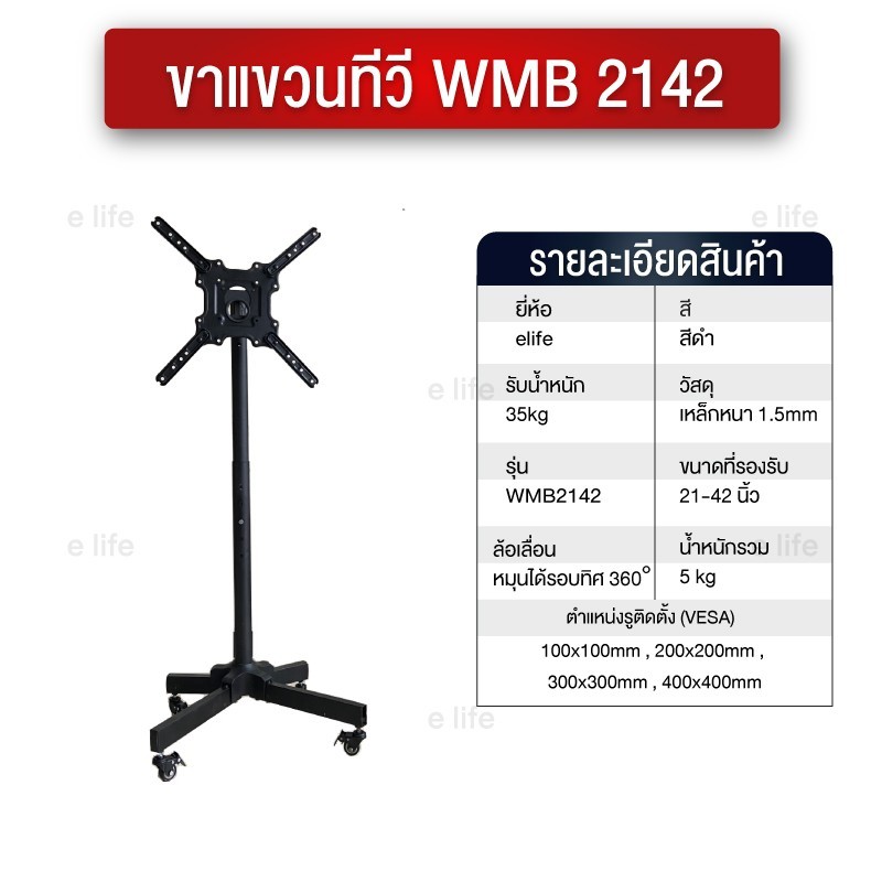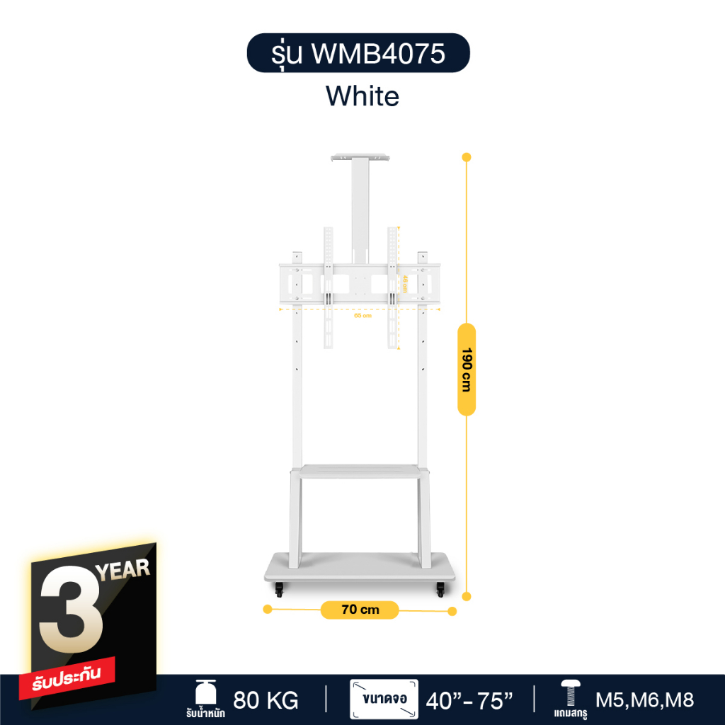 Elife ขาแขวนทีวี ขาตั้งทีวี ตั้งพื้น 21-120 นิ้ว สูง190cm สีขาว สีดำ หมุนได้ ขาทีวีตั้งพื้น แบบเหล็ก ขาตั้งมีล้อ