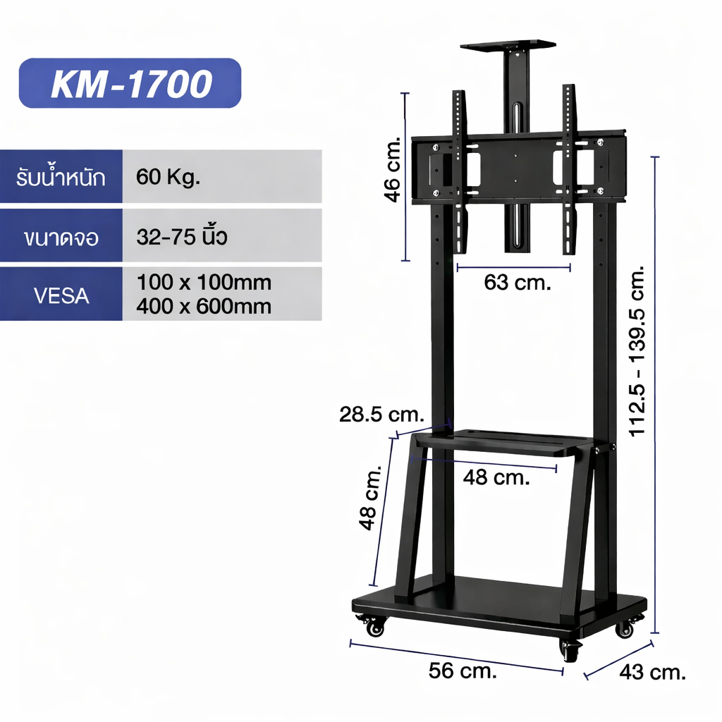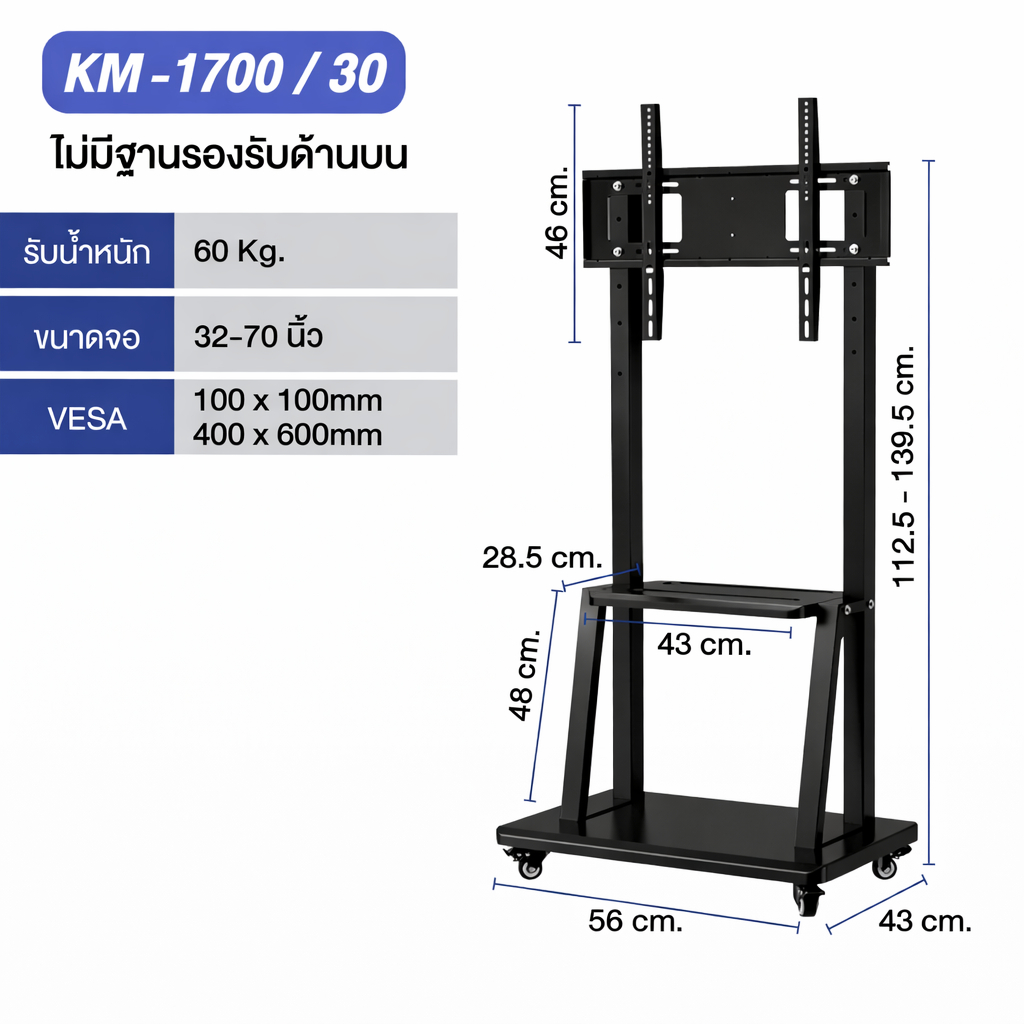 Elife ขาตั้งทีวีมีล้อเลื่อน ชั้นวาง แบบตั้งพื้น Mobile TVStand รับน้ำ หนักได้80kg ล้อล็อกได้ ห้องประชุม ออกบูธ ขาตั้งทีวี