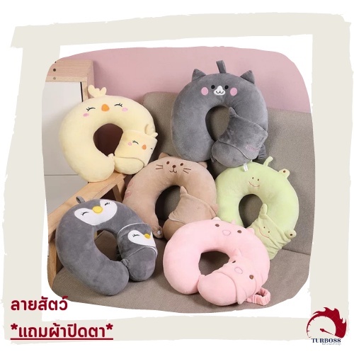 (ลด25%โค้ดC2PSNQ5)หมอนรองคอ ฟรี!ผ้าปิดตา เพนกวิน แมว ไก่ หมู ลายสัตว์ หมอนรองคอในรถ ผ้าปิดตา ลายน่ารัก TUR