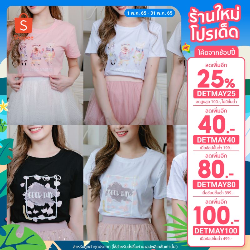 [เหลือ 142.- ใส่โค้ด DETMAY25] เสื้อยืด สกรีนลาย คอกลมเเขนสั้น (Free Size)